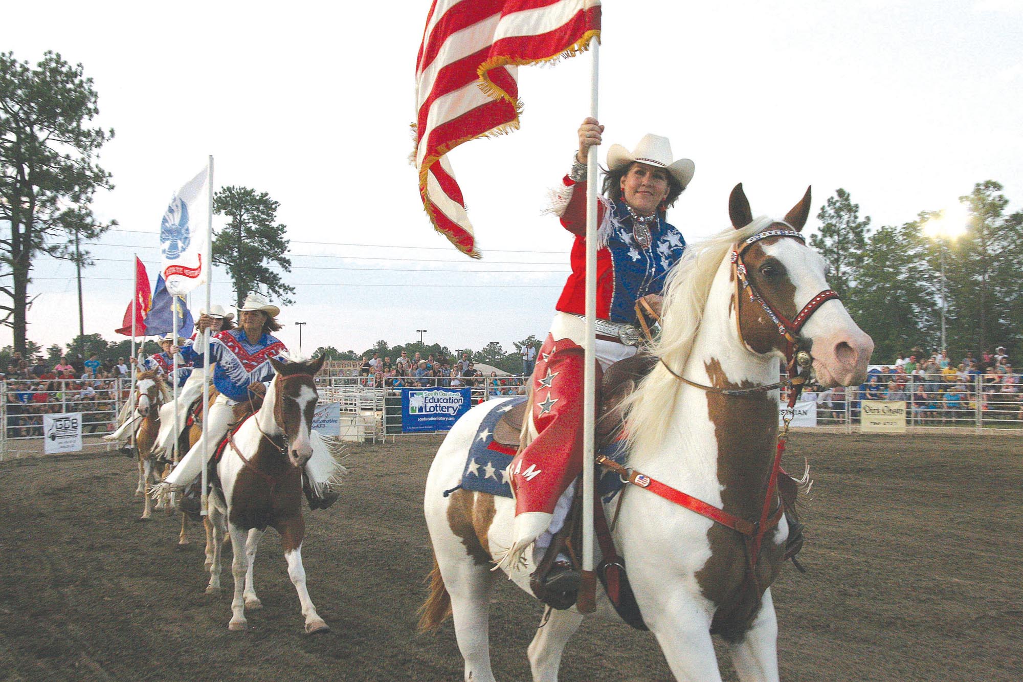 The colorful opening ceremonies will feature a precision performance by Pam Treadway’s paint horses as well as a moving patriotic tribute to each division of the U. S. military.