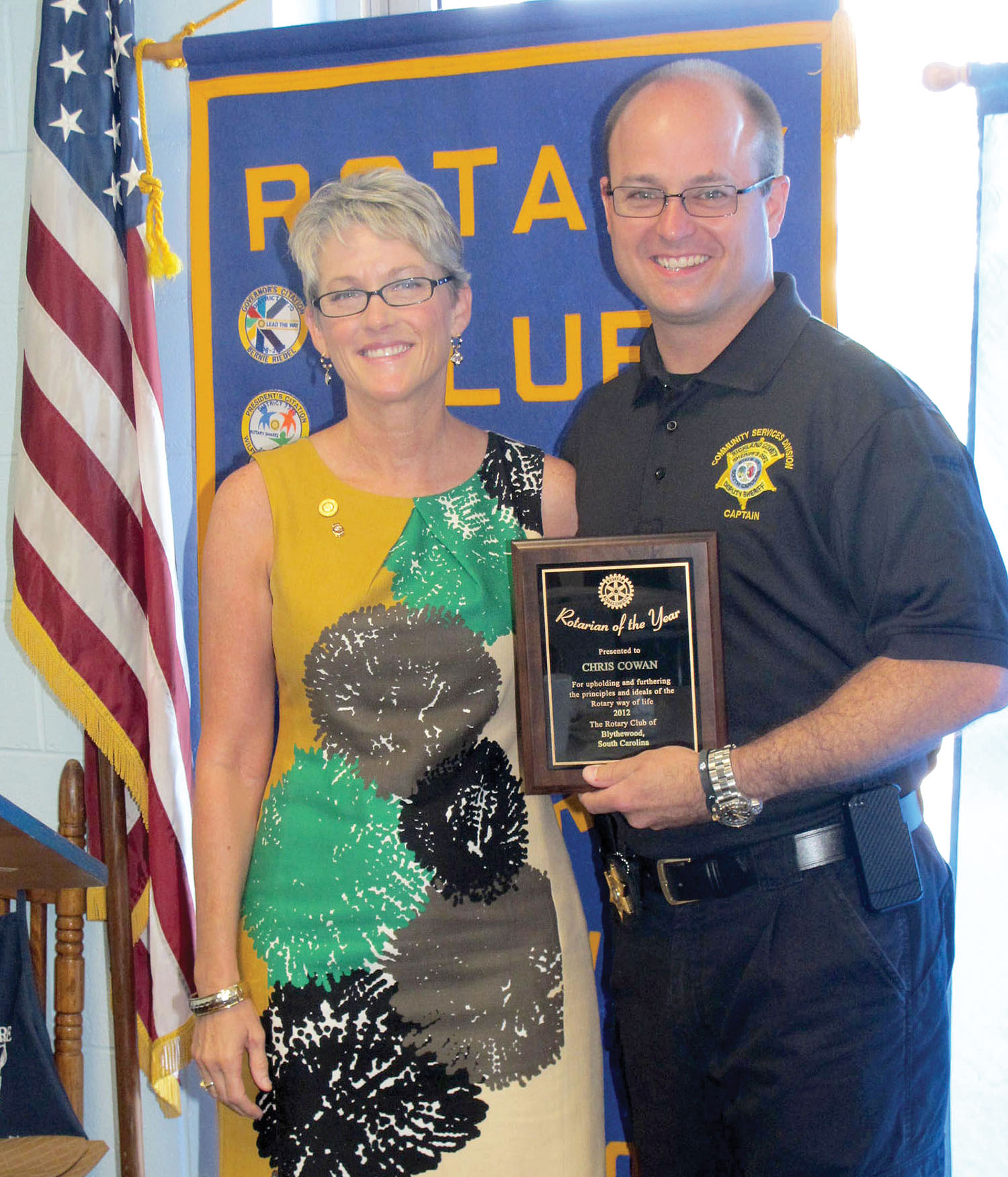 Richland County Sheriff’s Deputy Chris Cowan has been named the Blythewood Rotary Club’s Rotarian of the Year. The announcement was made at the Club’s regular breakfast meeting at Maggie’s Market July 19.