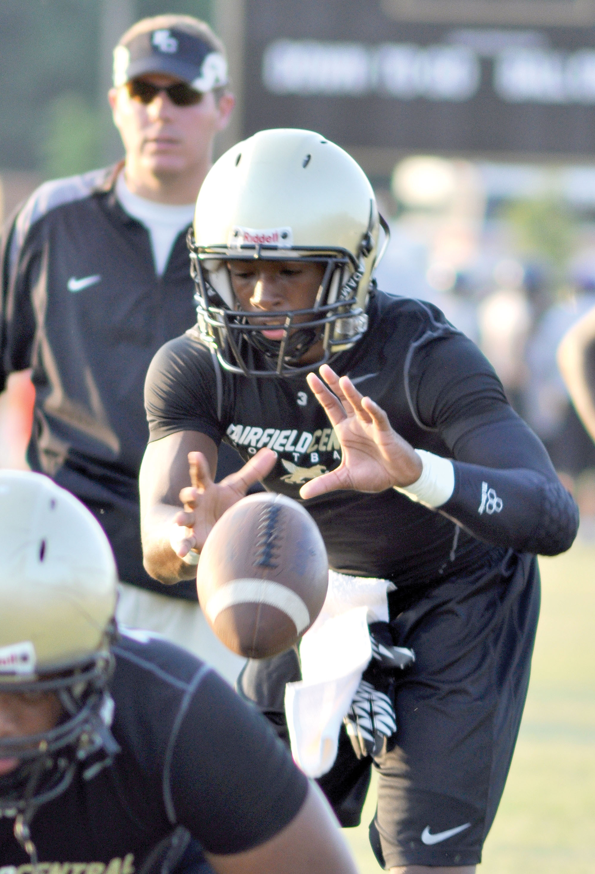 The Fairfield Central Griffins tested their passing and pass defense skills at the Camden 7-on-7 tournament last week. Pictured: Griffins quarterback DeAndre Belton takes the snap.