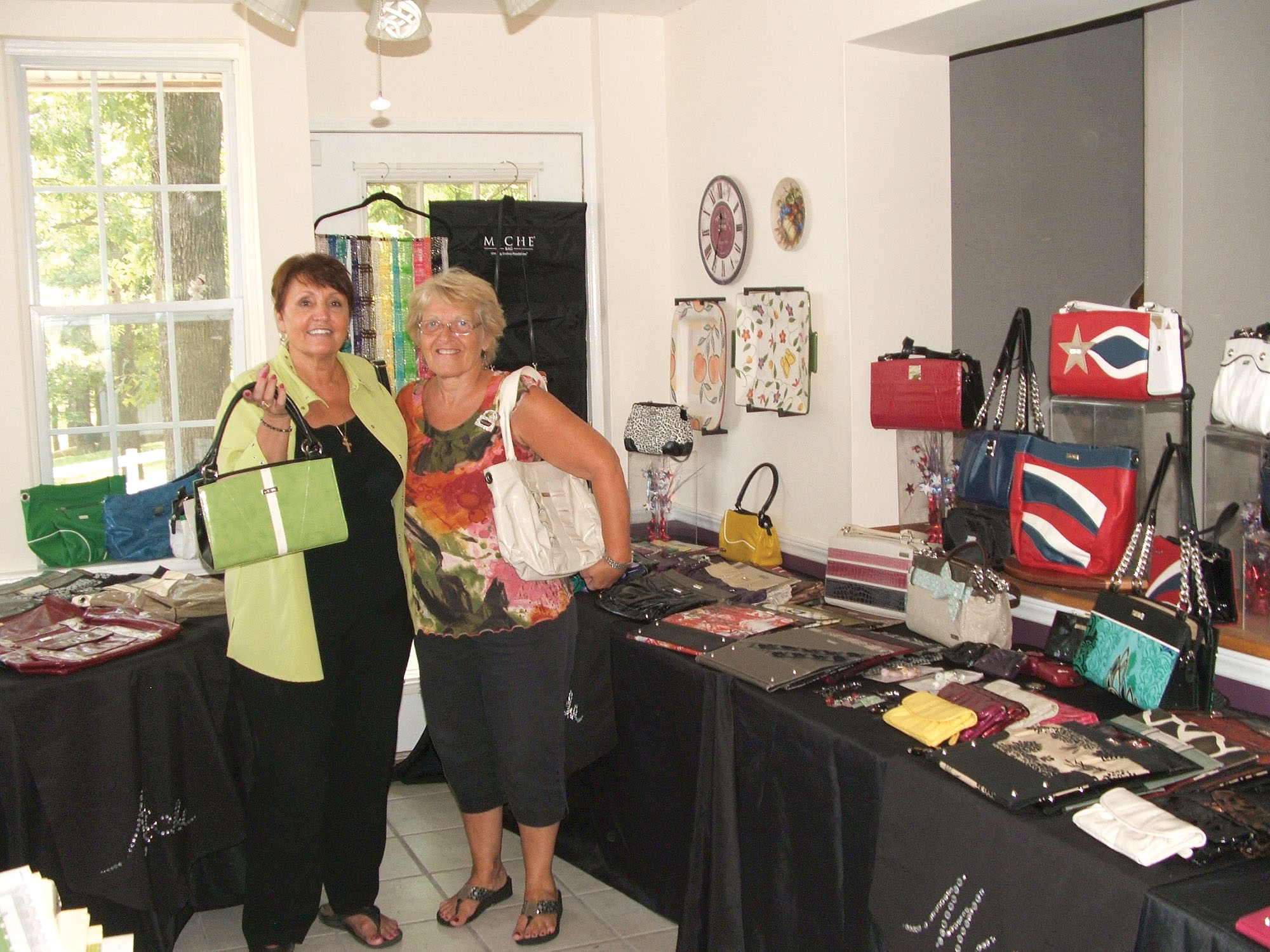 One of the club’s latest get-togethers was a Miche (pronounced “mi-shee”) Handbag show given by Faye Darby and Carol Smith of Myrtle Beach and held at the Lake Wateree home of Brenda McFarland. Before the demonstration, the hostess served many different wines and a lunch consisting of a hot dip with crackers, three kinds of finger sandwiches, cucumber, pimento and chicken salad, brie cheese, chips and fresh fruit with cream puffs and cheesecake squares for dessert.