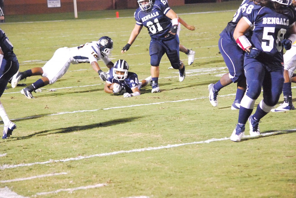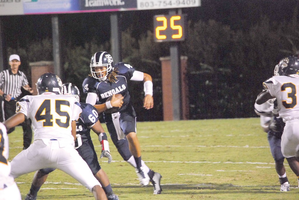 Friday night at District Stadium in Blythewood the Bengals prevailed over the Lancaster Bruins 21-12 to improve to 3-1 on the year. Lancaster came into the game having lost their last two and was desperate for a win, but Bruins head coach Bennie McMurray knew they had their work cut out for them.
