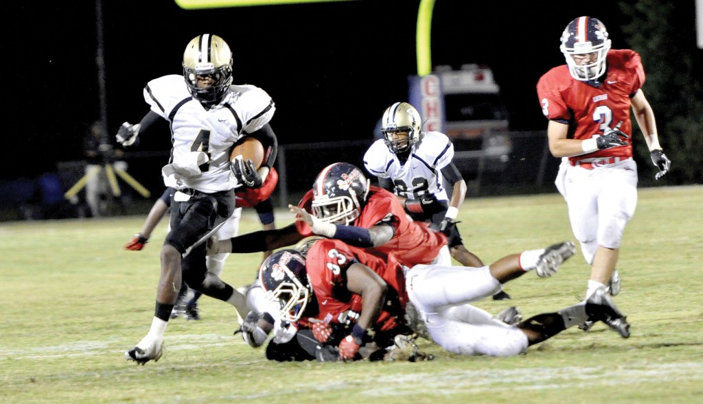 The Fairfield Central Griffins wrapped up their pre-region schedule Friday night with an impressive 43-8 win over the Braves at Cheraw. The victory lifts the Griffins to 3-2 on the year and redeems them from last week’s loss to Union County, when 40 points just wasn’t enough against the high-powered Yellowjackets – but for a brief moment in the early going, Cheraw appeared to loom like a specter of the Abbeville Panthers.