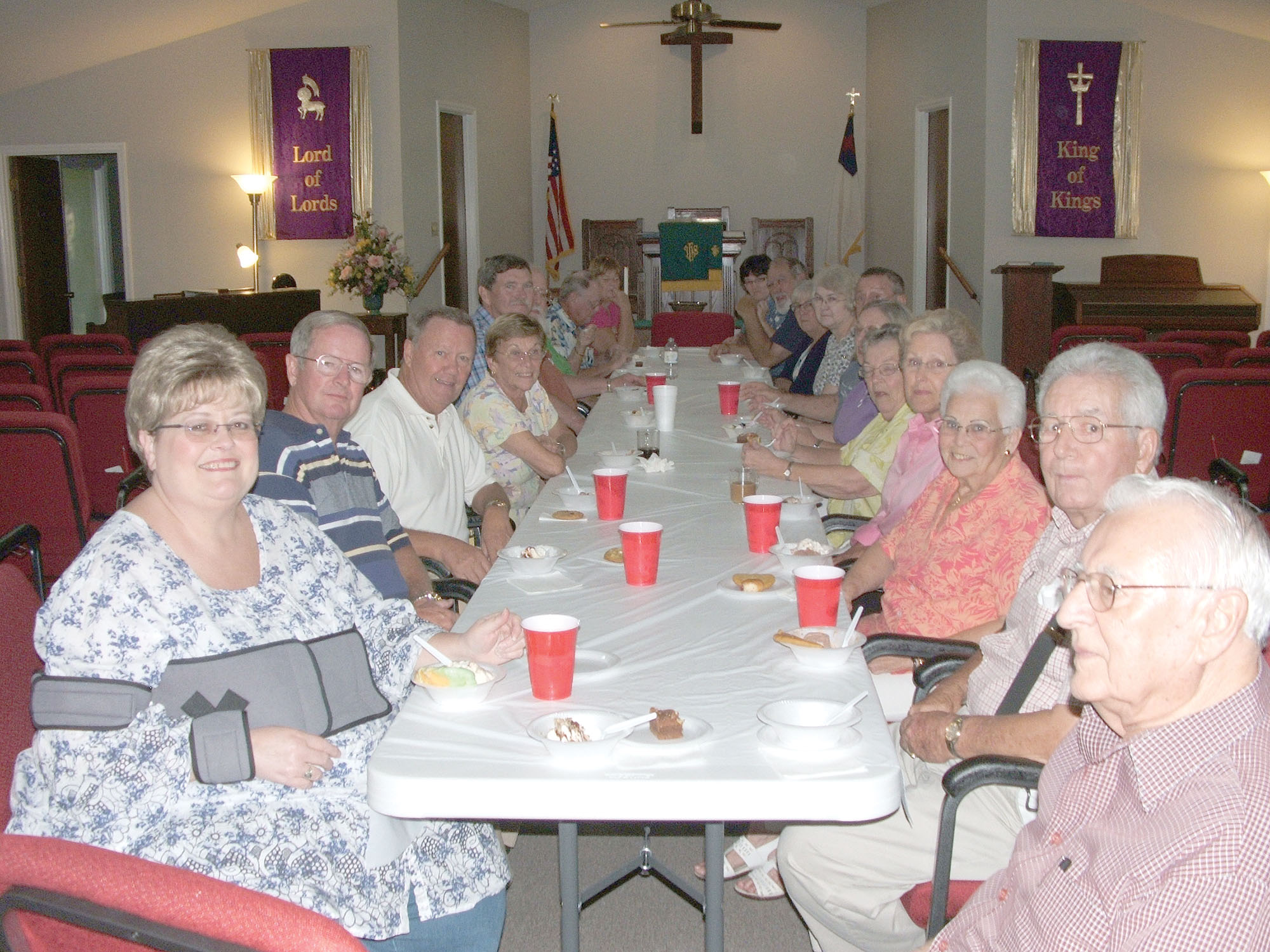Members from Lake Wateree Presbyterian Church sit down to some cold ice cream and warm fellowship Aug. 18.