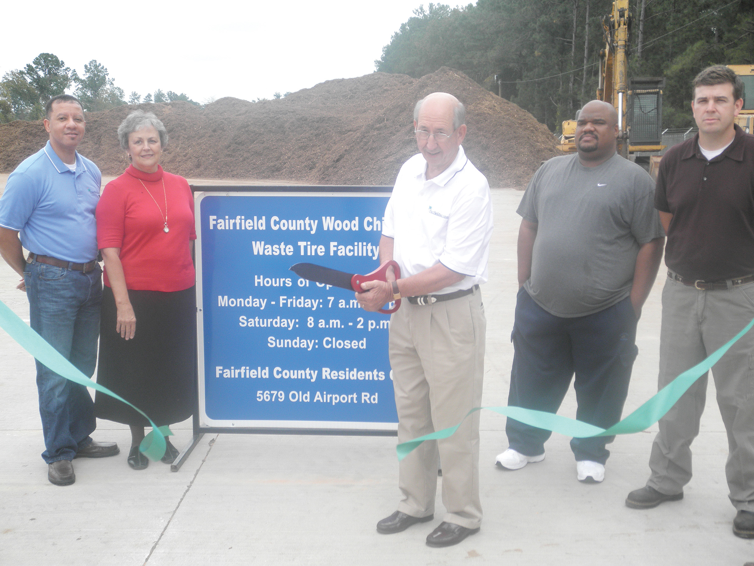 On Sunday, a handful of Fairfield County Council members gathered at 5679 Old Airport Road in Winnsboro for the ribbon cutting ceremony to open up the new Wood Chipping and Waste Tire Facility. County Council Chairman David Ferguson said he believes the facility, and the service it provides, can save the county money in the future.