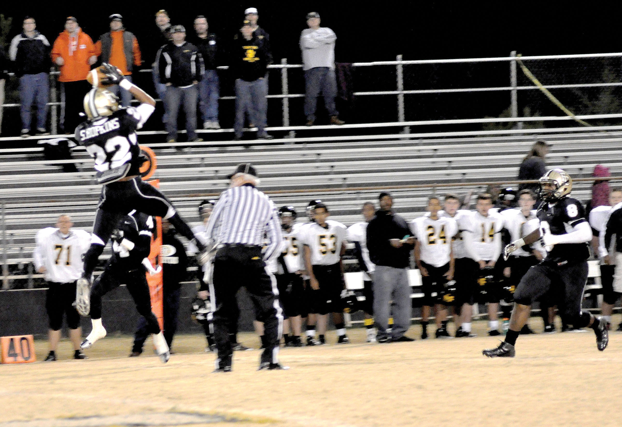 The Crescent offense continued to put up big numbers on the ground, but only between the 20s. The Tigers got as close as the Fairfield 19 on their next possession, but a fumble by Crescent’s Josh House was recovered by Antonio Lewis at the 17, and the Griffin offense was back in control again.