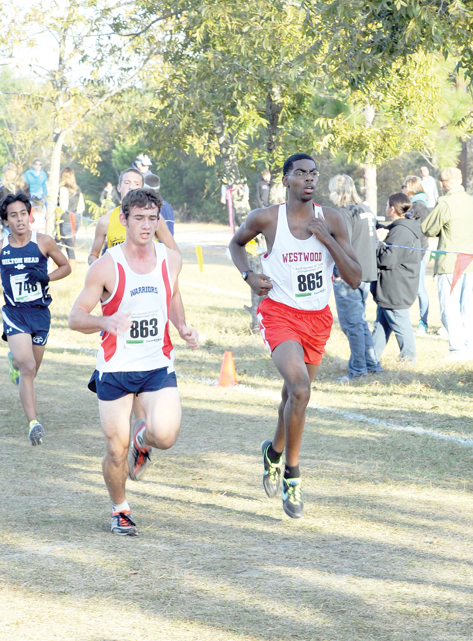 “He’s gone sub-18 minutes this year, so we’re hoping for a sub 17:30 finish today,” said Westwood’s head coach Brice Mann. “Our team has slowly gotten better throughout the season. We finished third in the region, and Ereck finished third in the region as well. Ereck is new here, his parents moved here from Germany. He spent a year at Blythewood High, but didn’t run there, so he’s new to cross-country.”