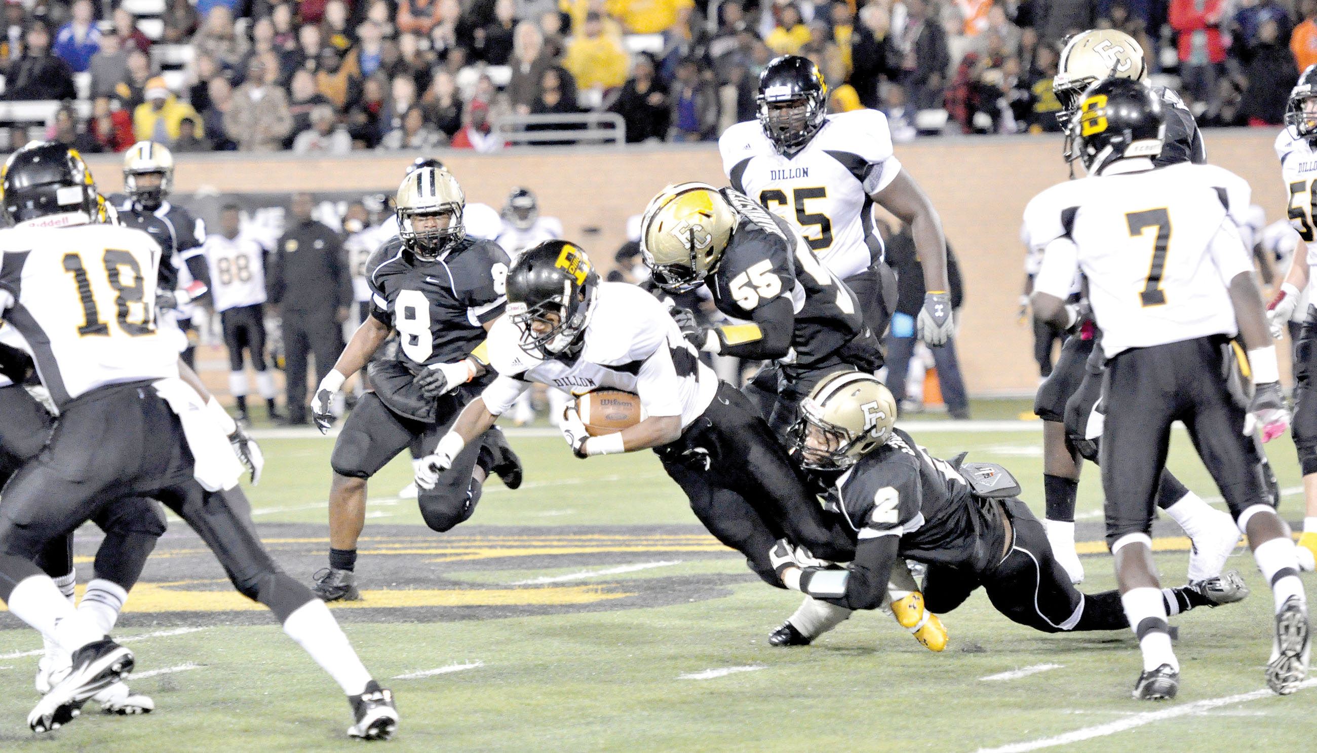 Mitchell Crosby (2) brings down Dillon’s Anthony Blue.