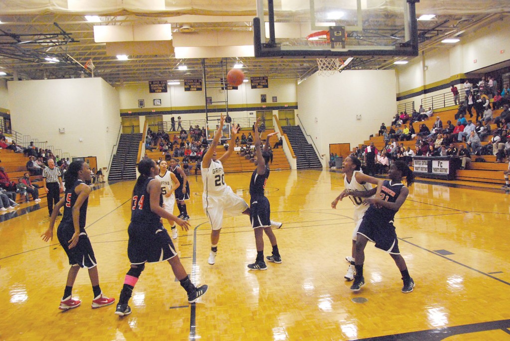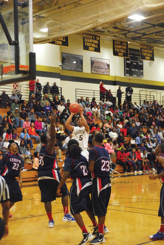 The boys’ team capped off the double header with a 53-43 win over the Cyclones. Chester scored the first bucket of the game but the lead would be short lived as it would be the only time Fairfield would trail in the game. Fairfield’s Victor Alston beat the first half buzzer with a basket and the Griffins took a 28-16 lead into the locker room at the break. During halftime the Griffins football team was recognized as for their accomplishments during 2012. The trophy ceremony included a Region III-2A title and the state runner up.