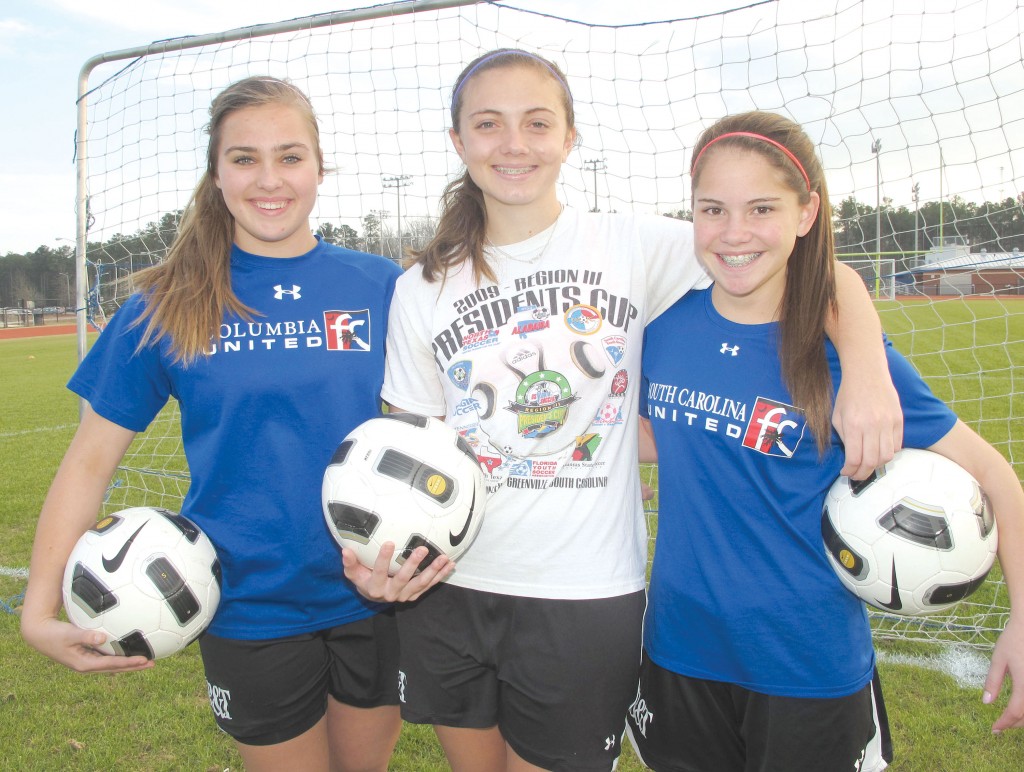 These Blythewood High School soccer players, Hannah Cowan, Claire Stephan and Taylor Barber, recently came home with gold medals from the Disney Soccer Showcase championship in Orlando, Fla. The girls’ 96 Elite club soccer team defeated Cincinnati United Crew Jrs. 3-0 and completely dominated the 11th ranked nationally United German Hungarians from Pennsylvania.