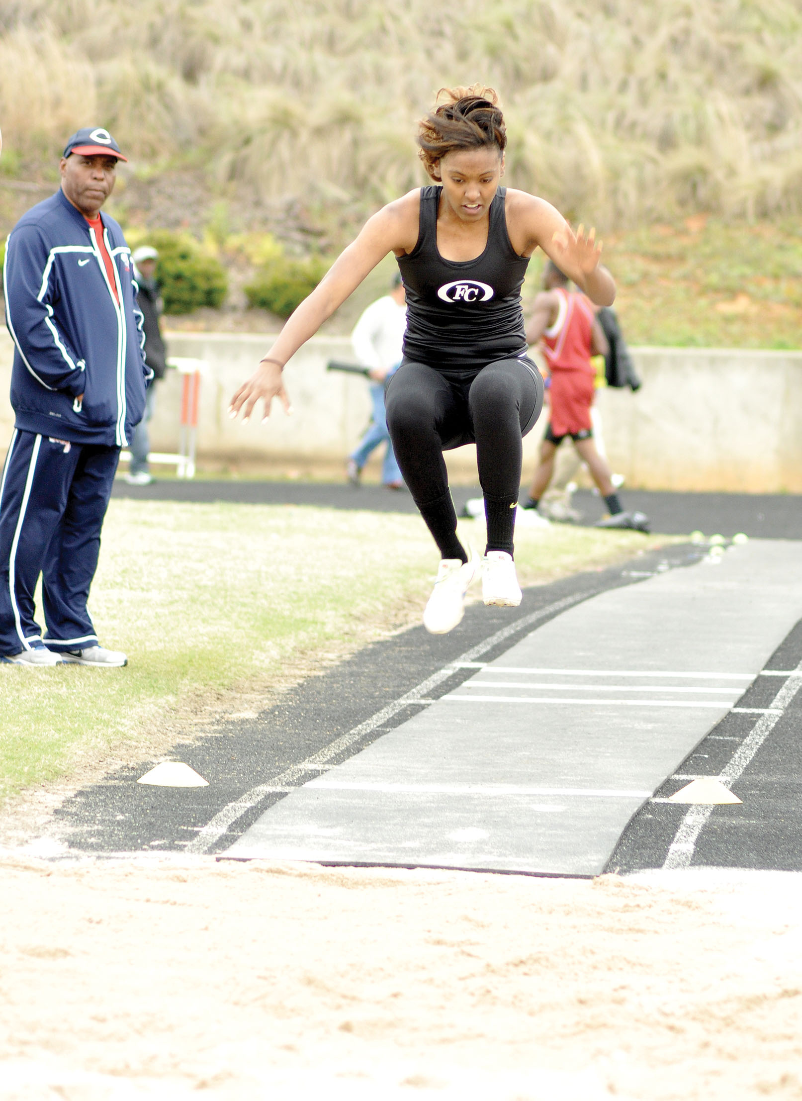 Jada Martin reaches for distance in the girls’ long jump.