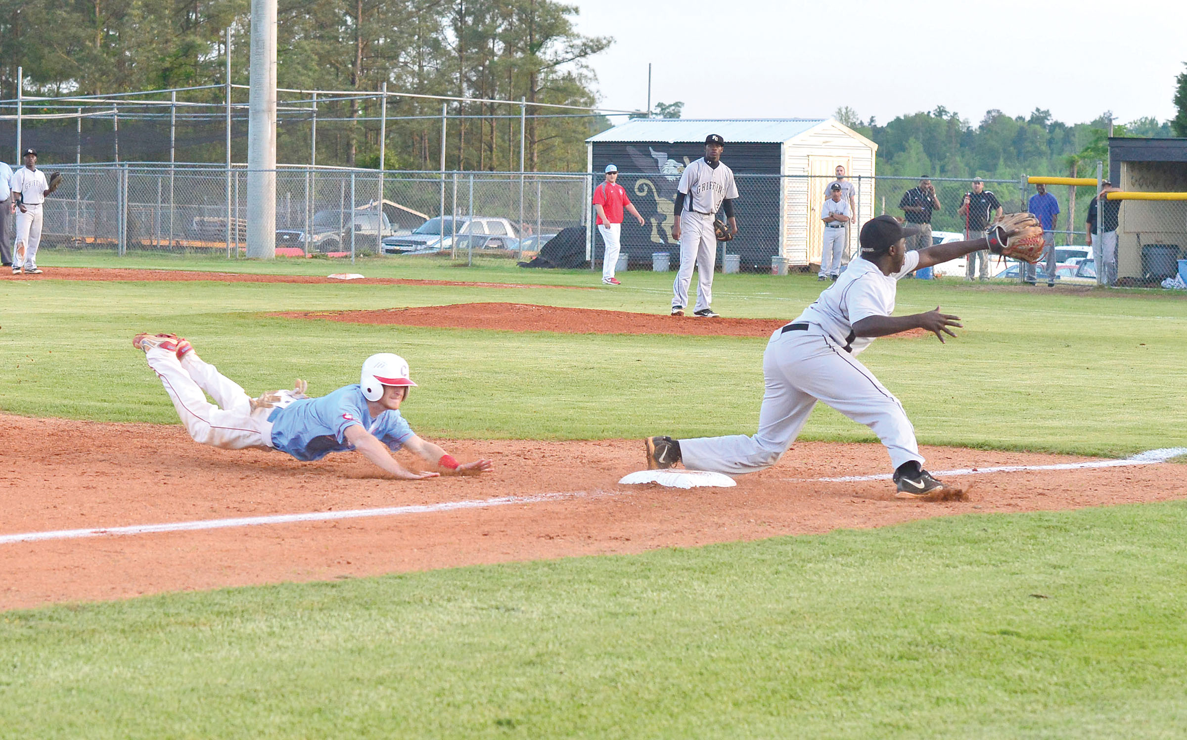 The Griffins tied the game at 1-all in the bottom of the third when Walker sacrificed home Javarius Cook, who led off the inning with a single. In the fourth, the Griffins took a 2-1 lead after Chris Boyd doubled with two outs and scored on a dropped fly ball in deep center off the bat of Chris Raley.