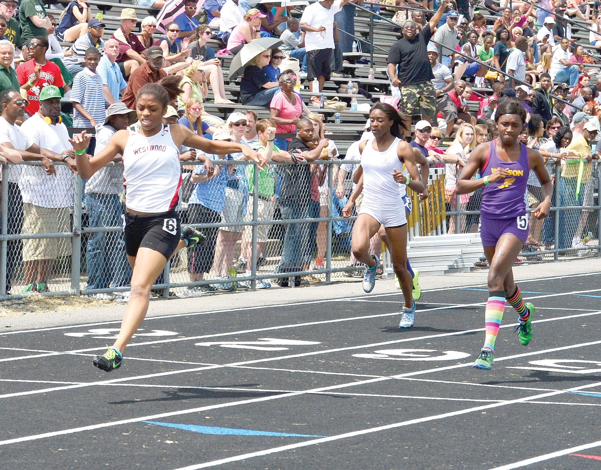 Westwood’s Brianna Pressley (6) takes gold in the 100-meters.