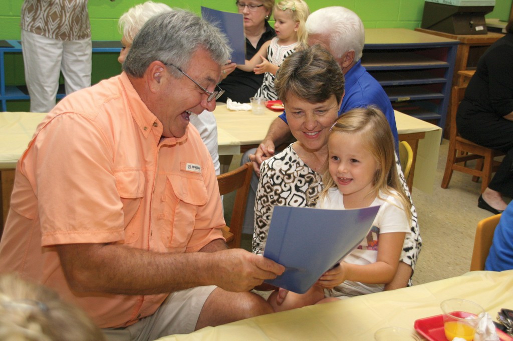 RWA grandparents Tony and Beth Caulder share a laugh with 4-year-old granddaughter Brantley Caulder as they visit and admire Brantley’s work during Richard Winn’s Grandparents Day celebration on Sept. 9. Richard Winn Academy’s pre-kindergarten through sixth-grade students enjoyed celebrating Grandparents Day and spending special time with their grandparents. Grandparents were invited to attend school in the early morning or near the end of the school day to share some time with their grandchild(ren). Activities included dancing, singing, doing Smart Board activities, reading essays written by the students about their grandparents, completing a grandparent questionnaire and playing Bingo.