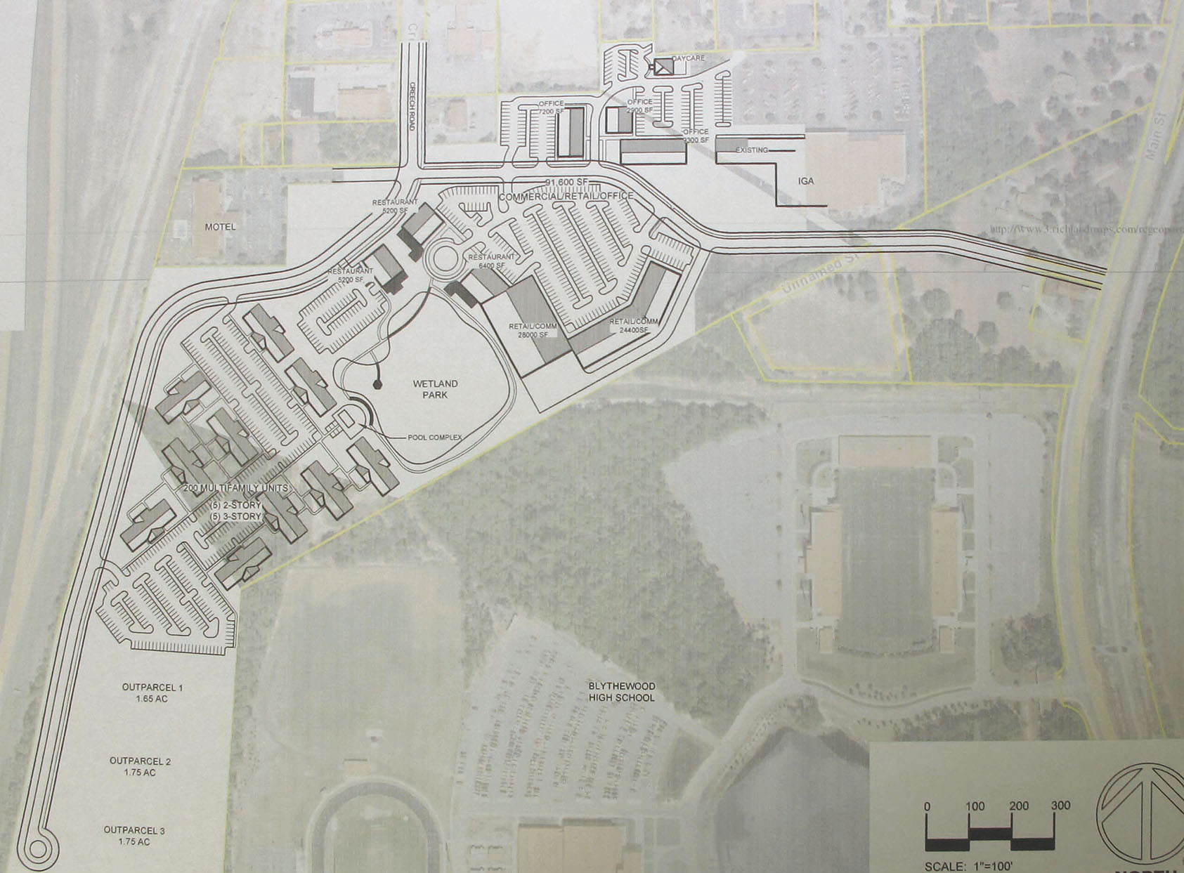 Representing LongCreek Associates, LLC of Greenville, engineer John Thomas of Sustainable Design Consultants, Inc., said the development would include 200 apartments, retail commercial, restaurants and doctor’s offices and is planned for an area bordered by Blythewood High School, the IGA Shopping Center, Highway 21 and Interstate 77. It would have entrances off Creech Road and Blythewood Road. Thomas said the developers have interest from a hotelier and he said there is space for several restaurants including three out parcels that might instead become space for doctor’s offices.