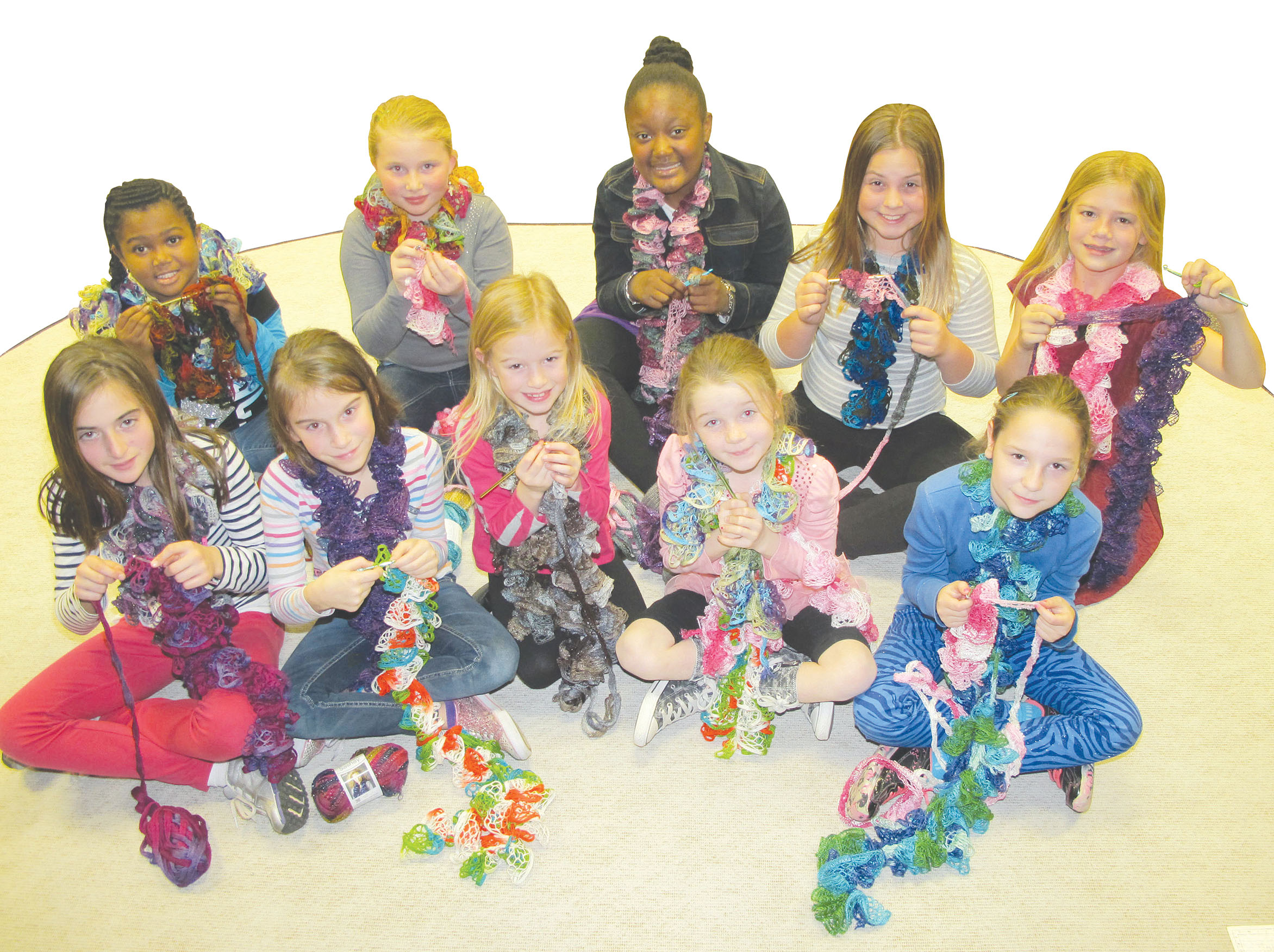 “It started as a craft class – making homemade potpourri and painting pine cones,” McHugh said. “Then, one day, McKenna Brown, one of my third-graders, spotted my new crocheted Sashay scarf, and she immediately asked me how she could make one for herself.”