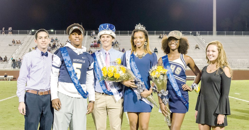 Blythewood High School celebrated homecoming last Friday night, as last year’s King and Queen joined in to honor the crowning the 2014 King, Queen and their Court. Pictured above are: Javier Martinez (left, 2013 Homecoming King), Hassan Belton (2014 first runner-up Homecoming King), Chandler Henderson (2014 Homecoming King), Bijonae Jones (2014 Homecoming Queen), Whitney Evans-Whipple (2014 first runner-up Homecoming Queen) and Teal Britt (2013 Homecoming Queen).