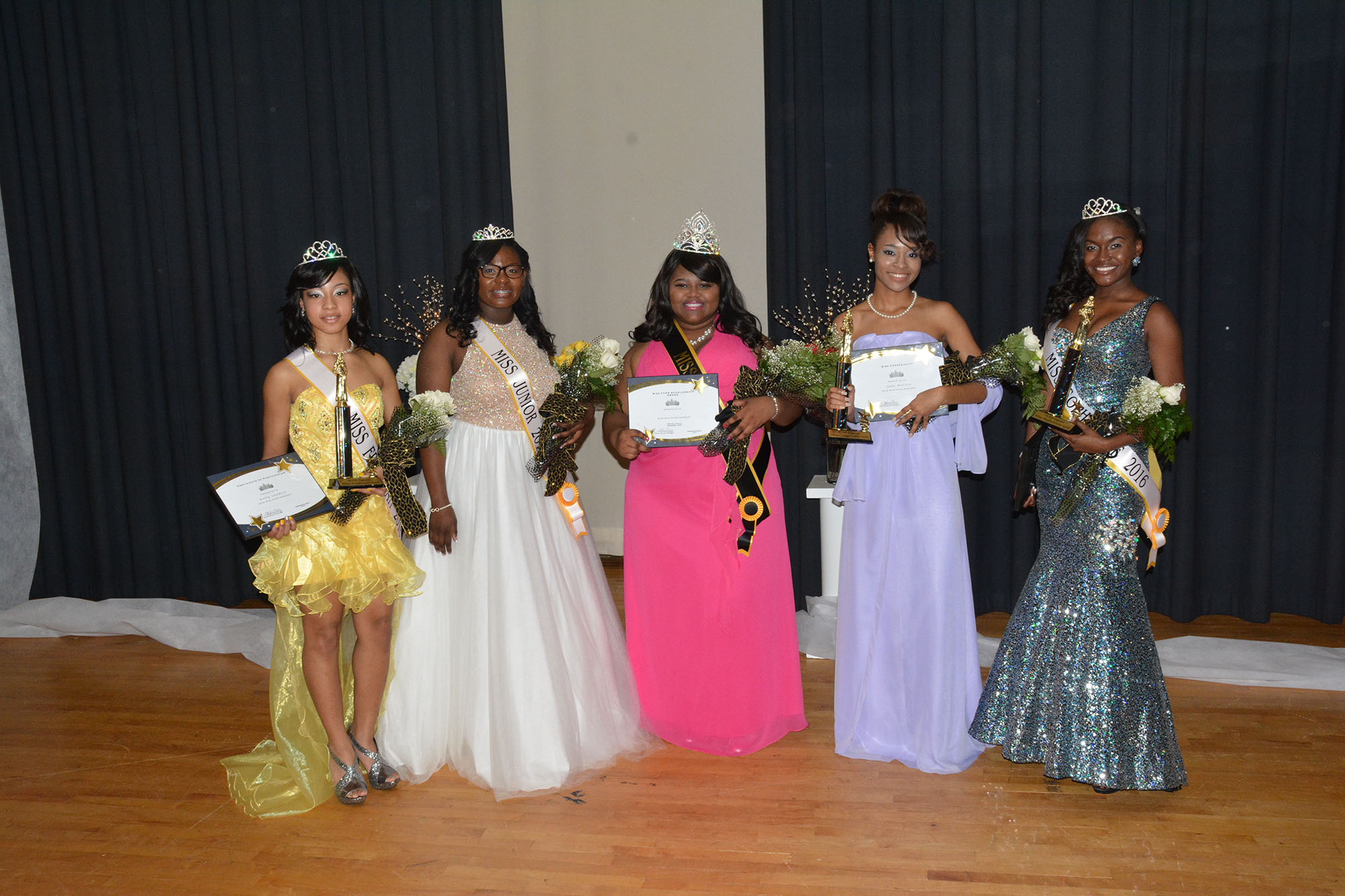 Fairfield Central High School crowned some of their best and brightest during last Saturday’s Miss Fairfield pageant. Above are: Kelly Sanders, Miss Freshman; Cornecia Young, Miss Black & Gold and Miss Junior; senior Mia Rouse, Miss FCHS; senior Jada S. Martin, Miss Congeniality; and Mysia Wynn-Robinson, Miss Sophomore.