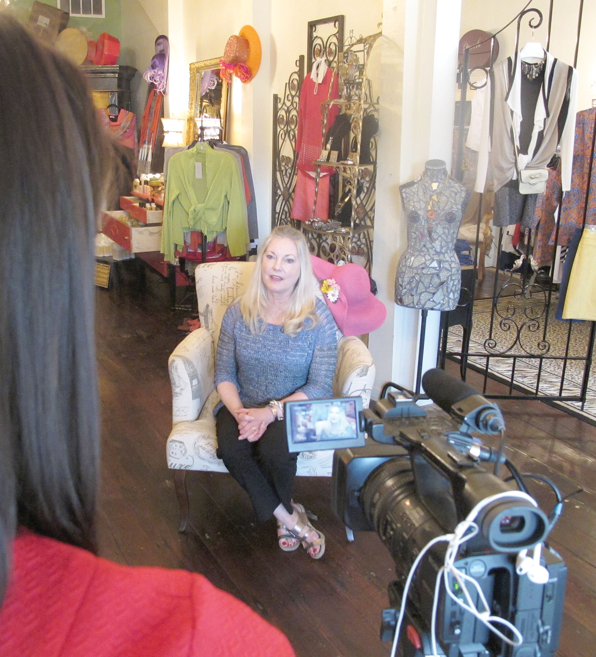 As part of a news program about women in business that aired on WLTX- News 19 last week, several Ridgeway shop owners were interviewed. Tina Johnson, owner of the Over The Top boutique on Palmer Street, talks about the struggles and rewards of women running businesses. Filming is WLTX camerawoman Joyce Koh.