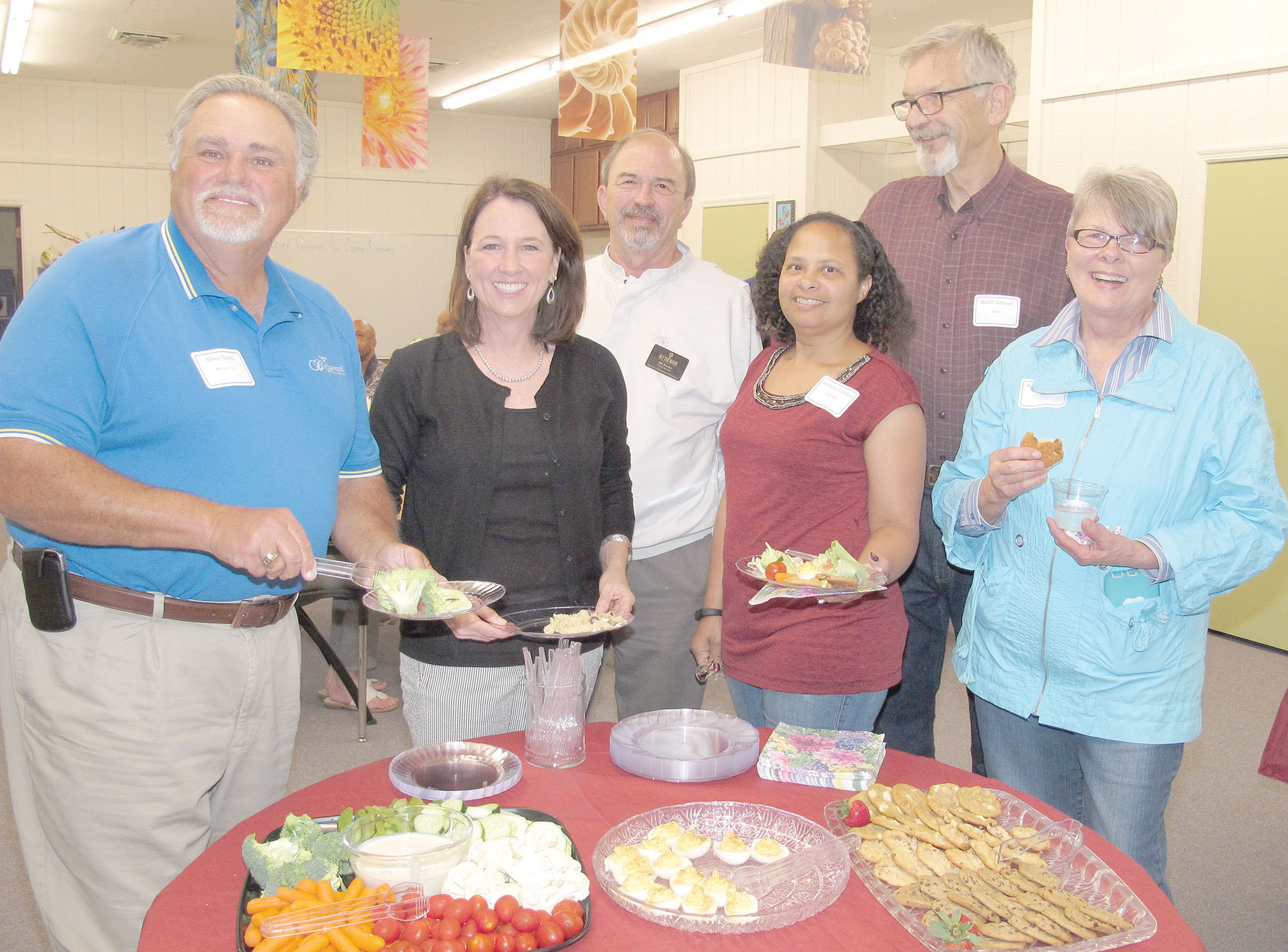 Camp Discovery hosted the ‘After 5’ event for the Blythewood Chamber of Commerce last month, showcasing the Camp’s great outdoor classroom where students learn about nature and their environment. Members of the Chamber were treated to a walking tour of a portion of the Camp’s 80-acre nature preserve by Jay Robinson, Director of Experiential Learning. Above, Mayor J. Michael Ross partakes of refreshments along with the Camp’s Executive Director Joanna Weitzel, Blythewood’s Economic Development Consultant Ed Parler, Good Dollar store owner Jennifer Gooden and Chamber members Booth and Peggy Chilcutt.