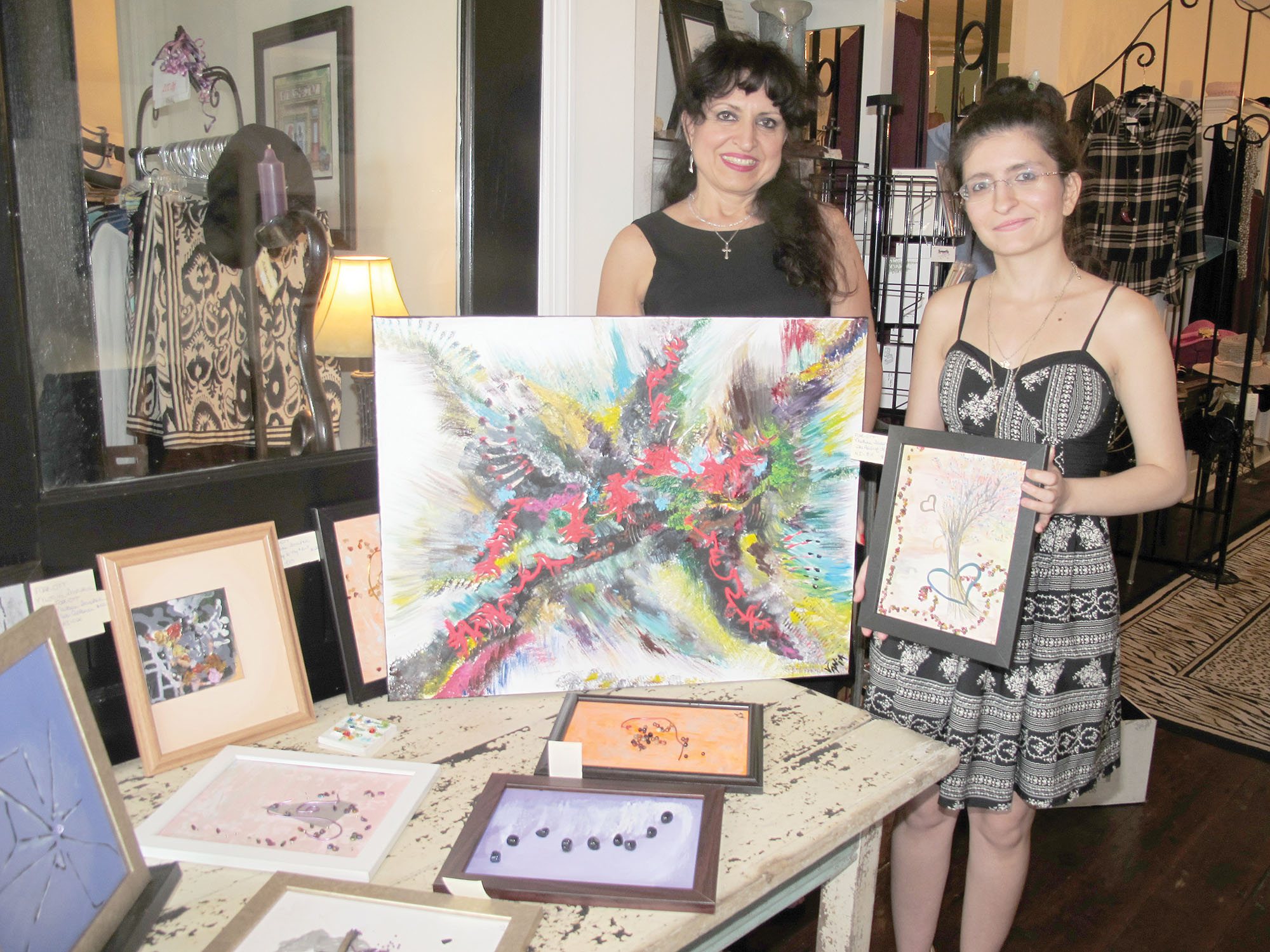 Bulgarian artists Vania Lavasheva and her daughter Nastasia displayed their work last week at The Gallery in Over The Top Boutique during Ridgeway’s First Friday event. Musician Frederick Ingram entertained while shoppers enjoyed wine and sweet treats.