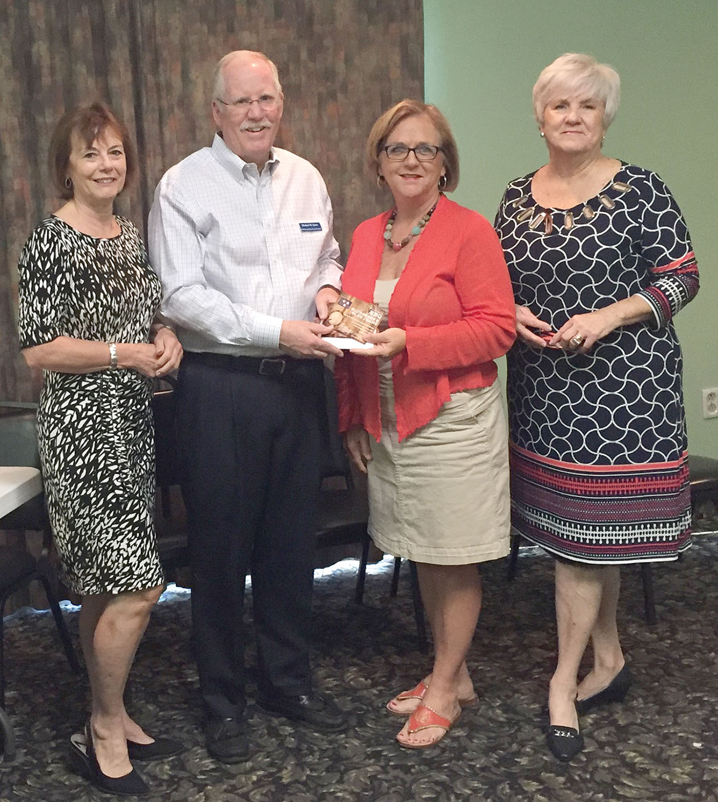 Lou Ann Coleman (center), won two tickets at the Fairfield County Chamber breakfast last week to the Fairfield Memorial Hospital Foundation annual BBQ, Bluegrass & Blue jeans event, coming up Sept. 30 at The Farm in Ridgeway. She is pictured with program speakers, Dawn Catalano, Foundation Executive Director; Mike Quinn, Foundation President and Terry Vickers, President of the Chamber of Commerce.