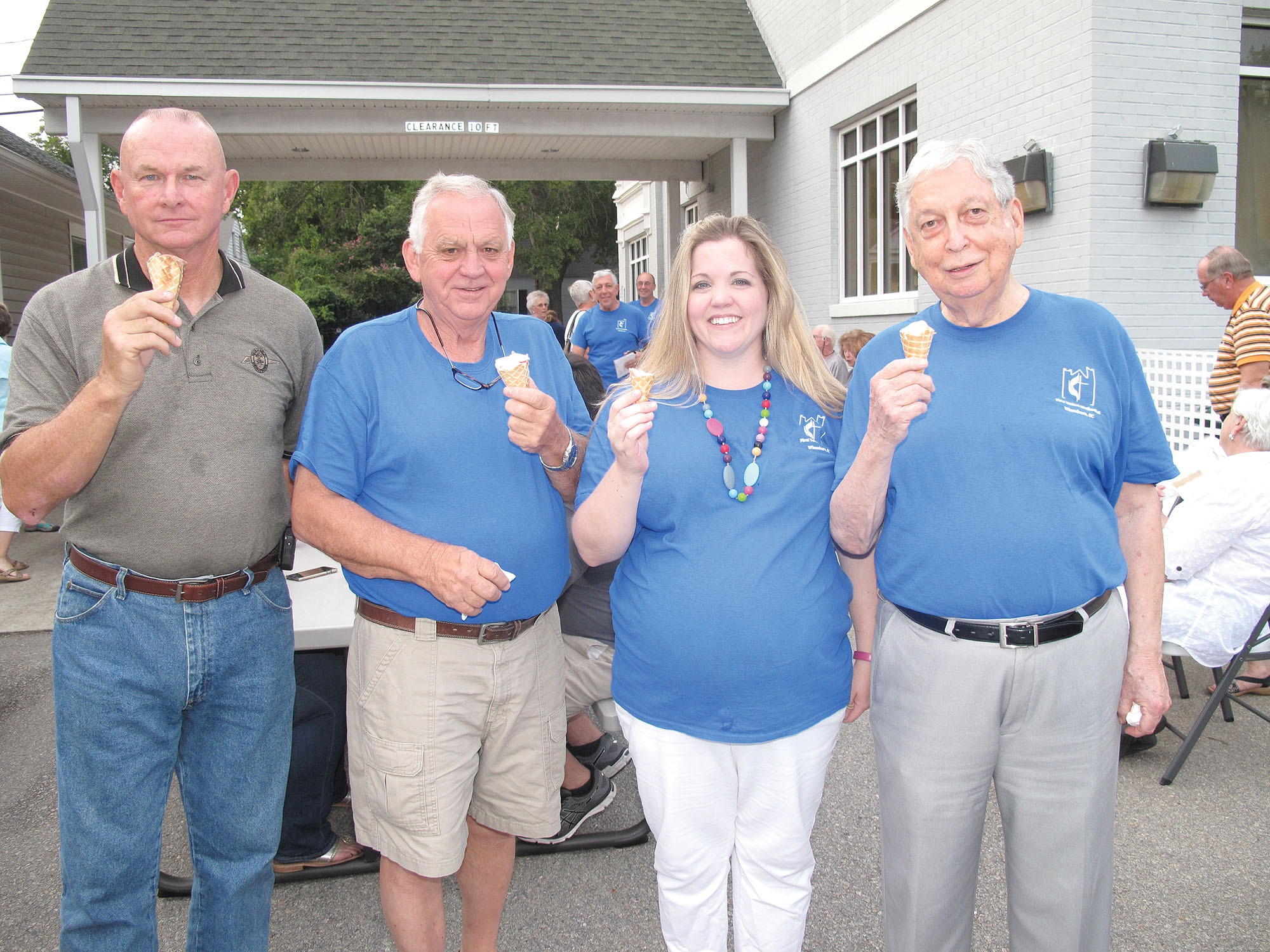 It was a big weekend for members of the First United Methodist Church of Winnsboro. On Friday and Saturday, members raised $10,000 during the Big Grab. Then on Sunday, they held a Tent Camp Meeting on the lawn behind the church, followed by an ice cream social. Fairfield County Sheriff’s Deputy Steve McDonald, Town Councilman Jackie Wilkes, Pastor Julie Belman and Bundy Bynum rewarded themselves for a weekend of hard work (and fun) with ice cream cones all around.