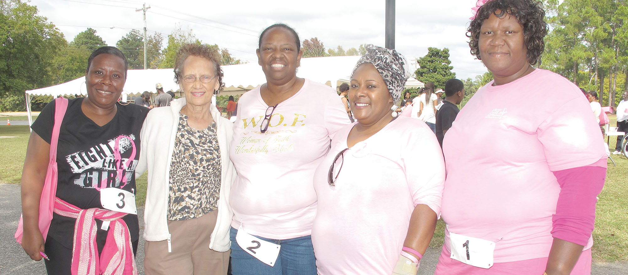 Marsha Cloud, Marjorie Byrd, Eliza Boulware, Lisa Wright and Lois Chambers, a group of breast cancer survivors, walked the course and shared their stories of early detection, surviving and thriving at the Fairfield Memorial Hospital Healthy Walk event.