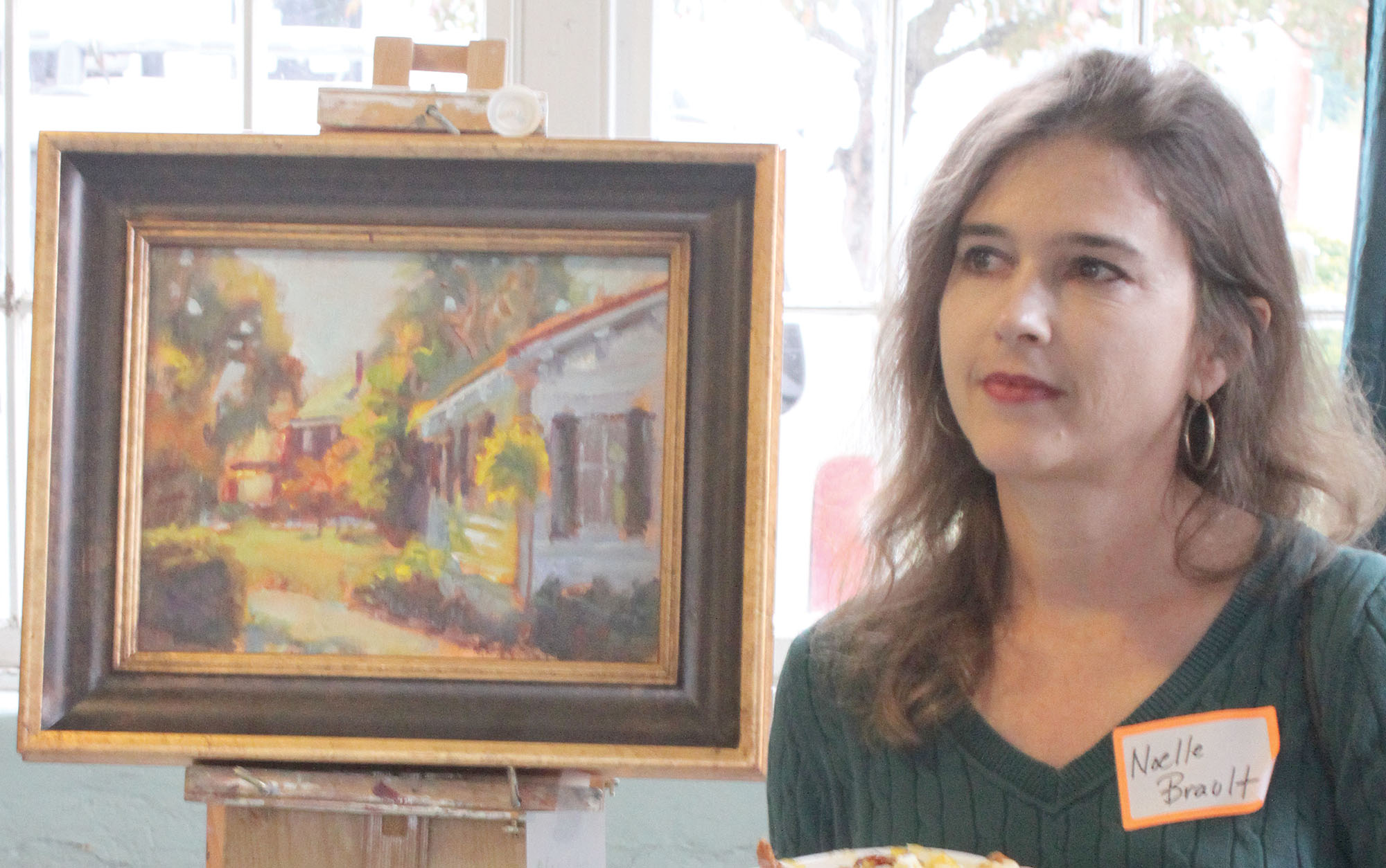 The Oil Painters of America, including artist Noelle Brault, descended on Winnsboro Oct. 15 to paint the town. Titled the Plein Air Paint Out, artists from near and far set up their easels in back yards, street corners and anywhere else they found scenic subject matter in Winnsboro. At the end of the day, a reception was held at the Women’s Club where juried artwork was displayed, judged and awarded. Noelle’s work of art won second place.