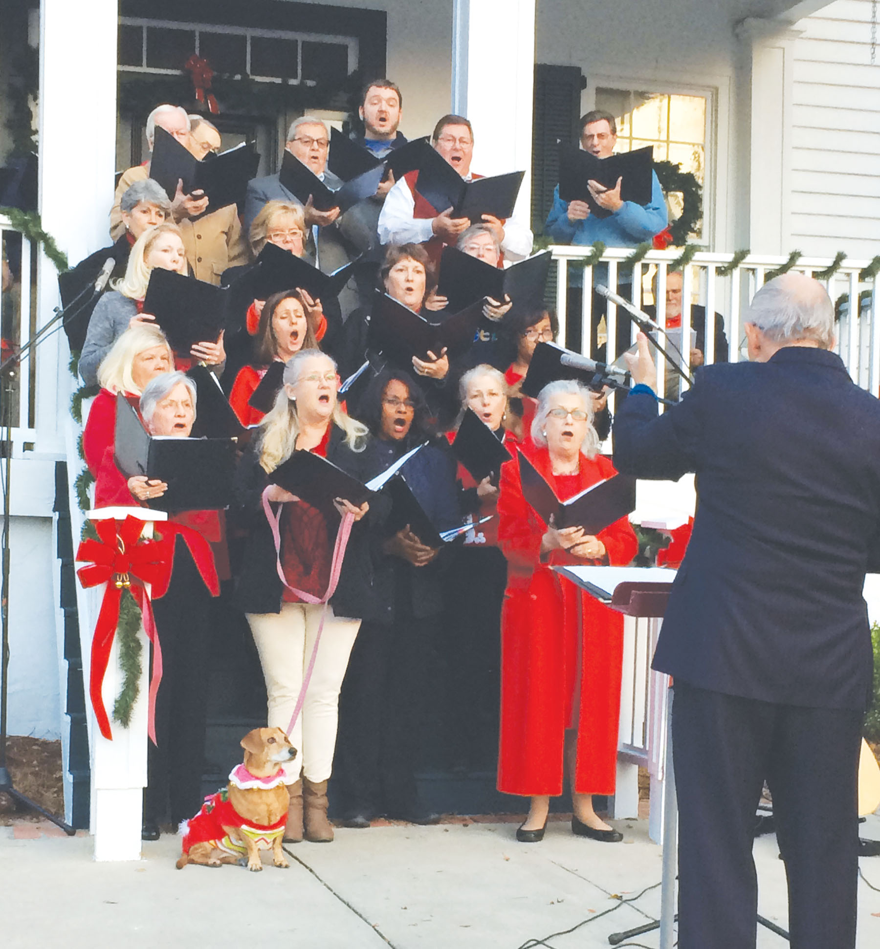 The Adult Choir from Trinity United Methodist Church entertained at the annual Blythewood Tree Lighting ceremony at Town Hall on Sunday. After carols, hot cider and a round of jokes from Mayor J. Michael Ross and TV personality Joe Pinner, the Blythewood beauty queens – Briana Davidson, Miss Blythewood and Liza Hunter, Miss Teen Blythewood – lit the Christmas tree.