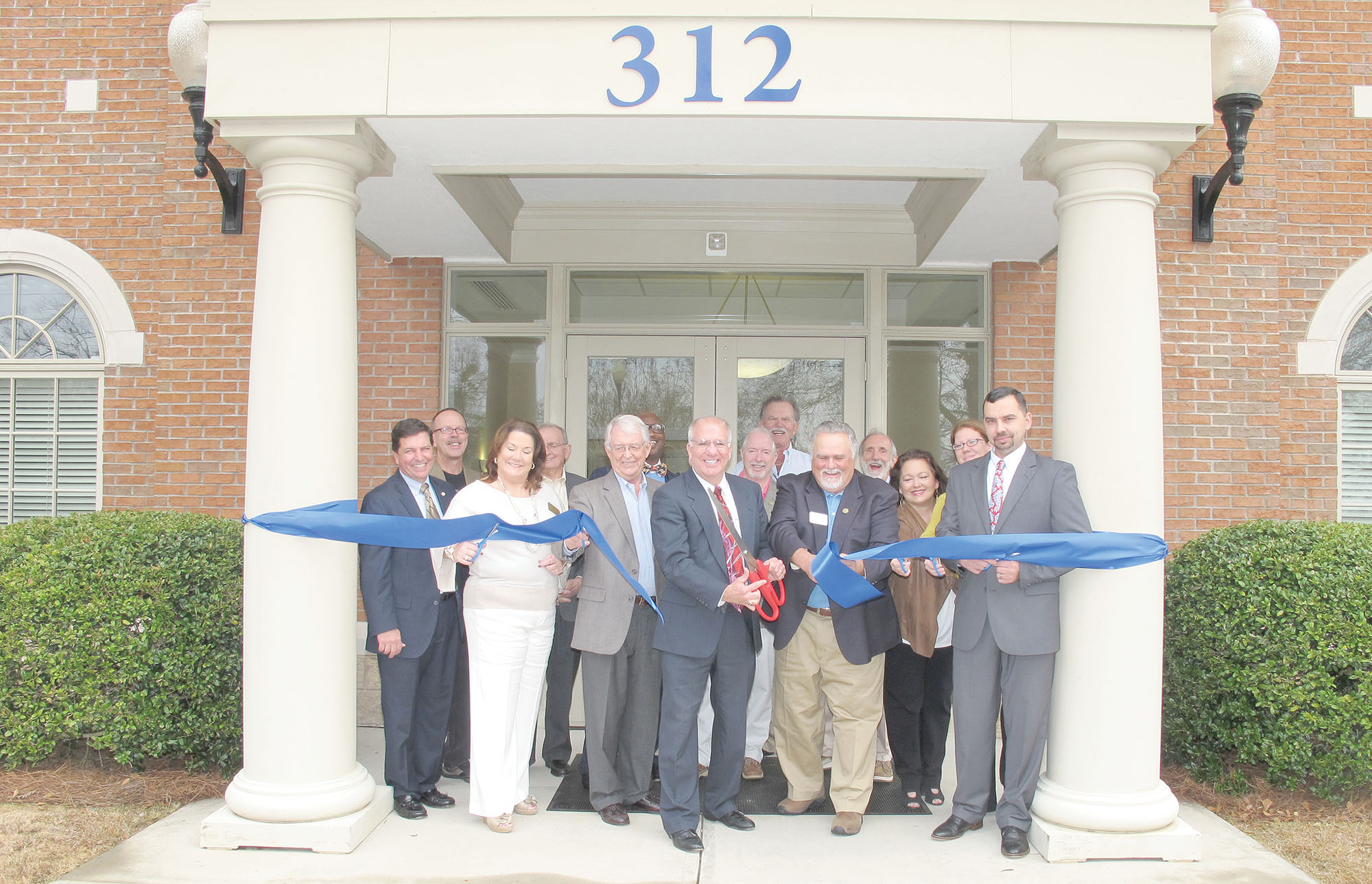 Cutting the ribbon for the grand opening of Palmetto Citizens Federal Credit Union in Blythewood are, front row: Michael Beam, CFO; Belinda Portnall, Blythewood Chamber of Commerce President; Jim McLean, Doko Park Foundation Chairman; Nick Wodogaza, President of Palmetto Citizens Federal Credit Union; Mayor J. Michael Ross; Angie Watts, Service Center Vice-President and Bryan Crosby, Service Center Manager. Back Row: Mike Switzer, Chamber of Commerce Executive Director; Buddy Price, Park Foundation; Town Councilmen Larry Griffin, Tom Utroska, Eddie Baughman and Malcolm Gordge, and Hannah Warren, Member Services Supervisor. The Bank is located at 312 Blythewood Road.
