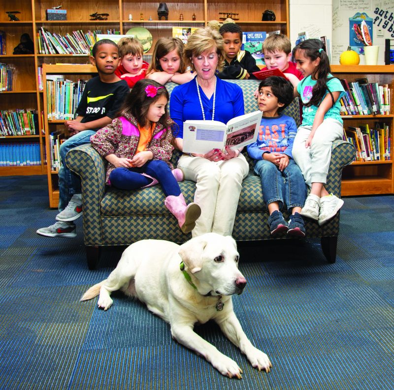 Well, having a dog helps! For the past five years, a friendly yellow Labrador Retriever named Lady has been a favorite of students on the days she accompanies her owner, teacher Holly Threatt, to school. Lady is a former seeing-eye dog and a certified therapy dog with an easygoing personality that encourages the children’s affection and supports their good work habits. Tucker said that Lady’s presence helps students develop the compassion and humanity that is kindled through fun, friendly relationships with animals.
