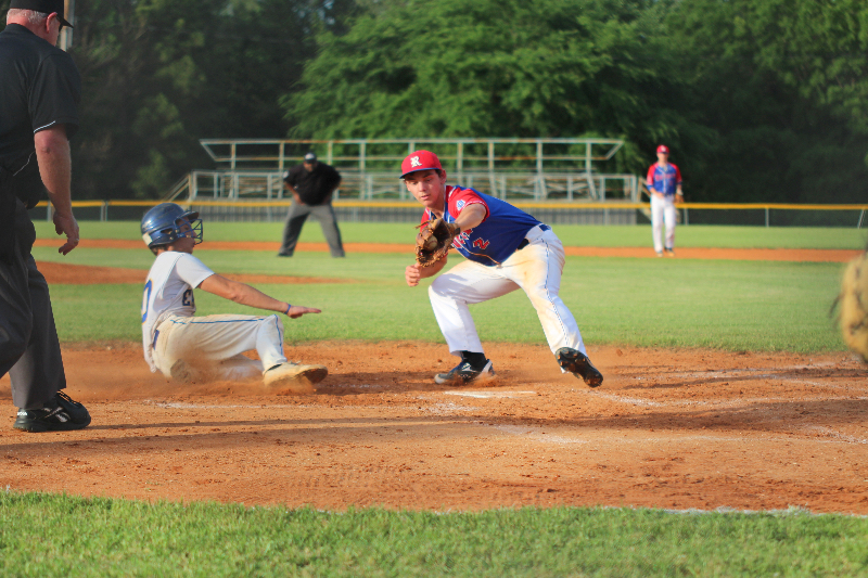 The first four Raider batters in the fourth delivered hits, including a Hank Avinger RBI-double that broke the tie. Nick Strickland knocked in two base-runners with a single, and then a series of errors allowed two more Raiders,including Strickland, to cross the plate.