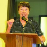 The speaker, State Representative MaryGail Douglas, encouraged everyone in the community to participate in the activities of the center and to support it as a volunteer.