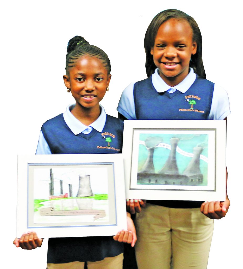 Fairfield Magnet School for Math and Science students Tavetria Amponsah, left, and and Tiauna Turner, right, were awarded for their drawings in the 18th Annual North American Young Generation in Nuclear (NAYGN) Drawing Contest. After winning at the State level for their artwork in the “NuClear: the NEW Clear Air Energy” contest, Tavertria’s drawing won first place and Turner’s won second at the national level. The students won money, science and energy books, and art supplies and were featured at the National NAYGN Nuclear Power Convention.