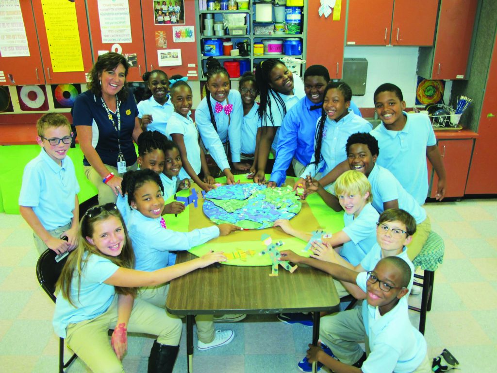 Kimi B. Daly (upper left corner), Art teacher at Fairfield Magnet School for Math and Science, and her students: (Standing) Brian Metts, Daly, Shy’Kirrah Mobley, Akenzy Douglas, Amiya Lyles, Diamond McDougal, Promise Belton, Antron Woodard, Jayla Jamison, Shakeem Griffin. (Sitting) Lillian Branham, Kamil Roberson, Mykiah Sampson, Caylin Johnson, Quincey Pringle, Graeme Douglas, Hank White, Zion Woodard. The Magnet School recently received the highest scores in the state for its art program. This is the second year in a row that Daly’s classes achieved the honor.