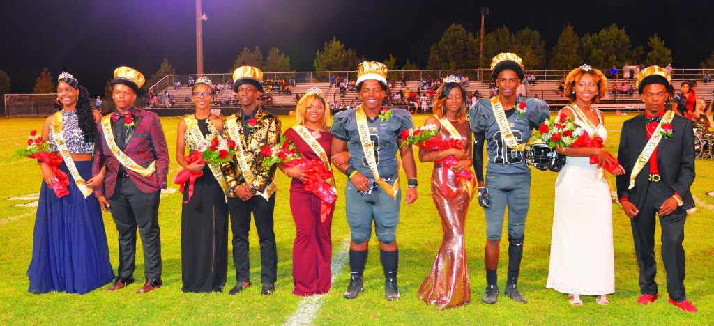 Fairfield Central Homecoming King and Queen with their Princesses and Princes – from left, freshmen Aaliyah Trapp and Triyvon Carson-Melvin, sophomores Trenell Boyd and Kenneth Miller, Queen Rojae Burns and King Jamond Jackson, juniors Jazmine Williams and Ny’Darius Williamson, Seniors Amari Jones and Carlos Davis