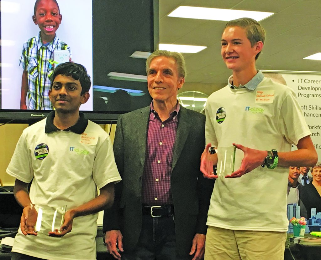 BLYTHEWOOD – Blythewood High School sophomores Samuel Cathart and Abhimanyu Sailesh were recognized at the State Fair for winning the IT-oLogoy Innovation Challenge. Not only did Cathcart and Sailesh win first place in the high school division, they also won the top overall TM Floyd Top Innovator award.