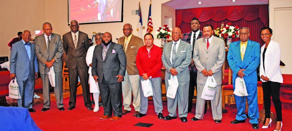 BLAIR – Gethsemane Baptist Church celebrated Veteran’s Day with a special recognition of all the veterans during morning worship on Sunday, Nov. 12. From left: Clifton Hendrix, John Peoples, Lawrence Coleman, Sandra Pearson (in memory of her husband Lester Pearson), Rev. Eric Bell (Gethsemane Baptist Church Pastor) Arthur Willingham, James Jackson, Franklin Goodwin, Associate Pastor Jonathan Carmichael, Douglas Trapp, Herman Robinson and First Lady of Gethsemane Whitney Bell.