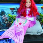 Mermaid Maci King sits atop her undersea trunk-or-treat thrown handing out chips and other treats