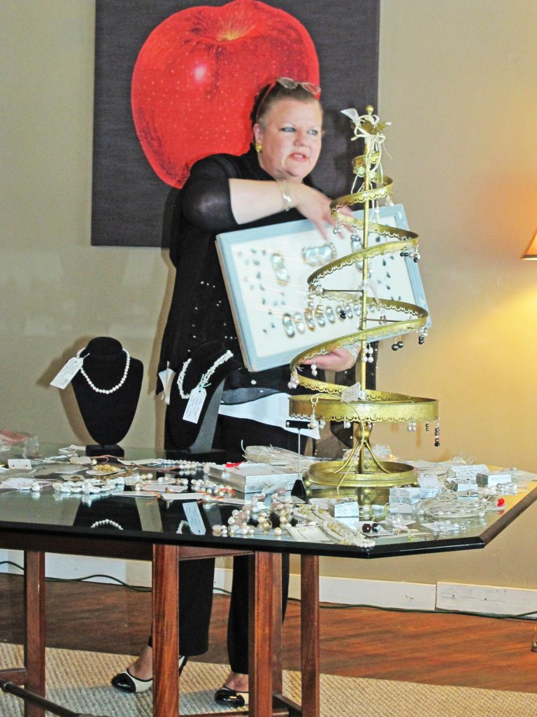 Dawn Corley, The Charleston Silver Lady, above, knows a thing or two about pearls, too. And she imparted that knowledge to about 50 women who attended the annual open meeting of the Inquerindo Book Club.