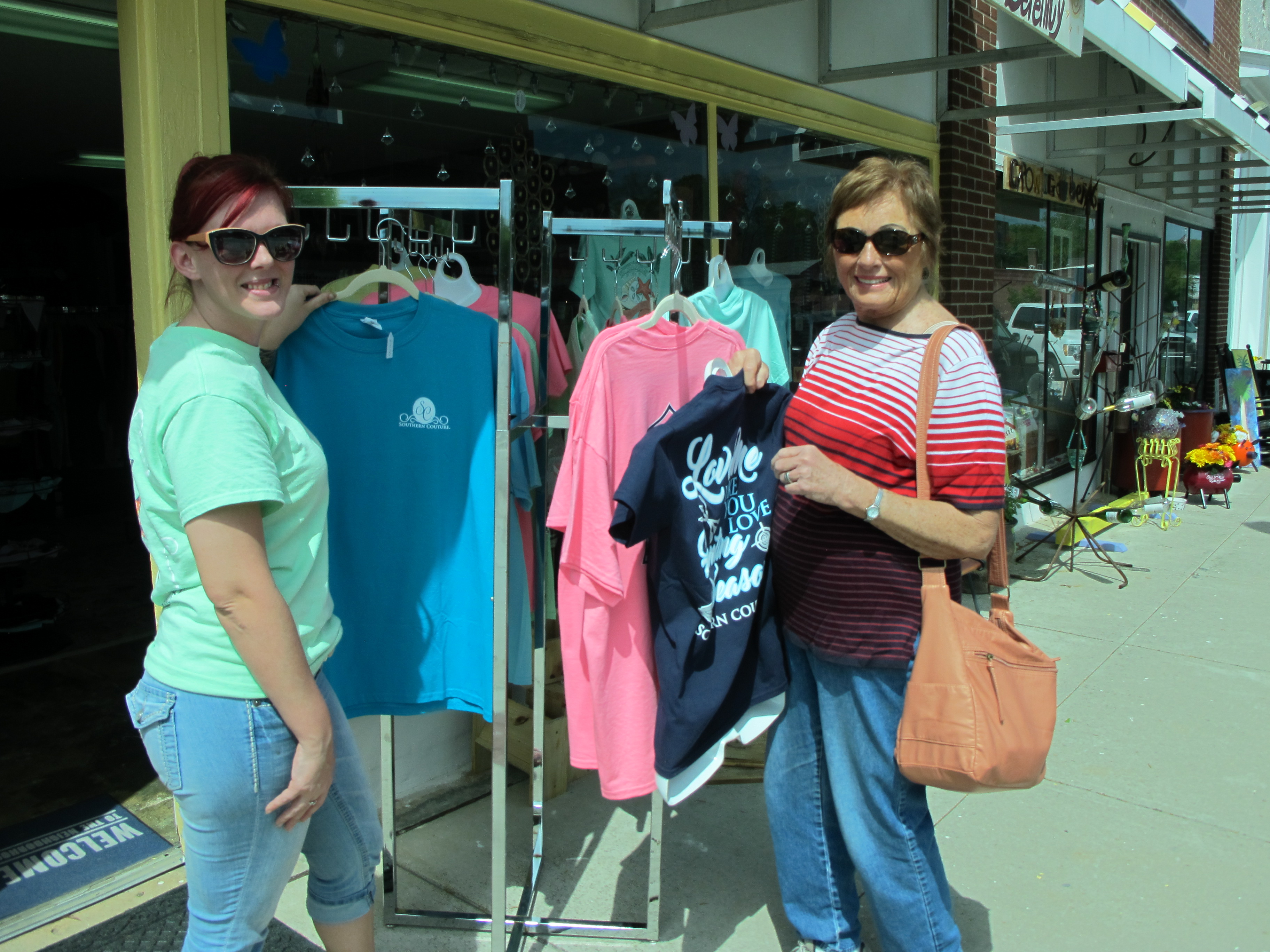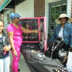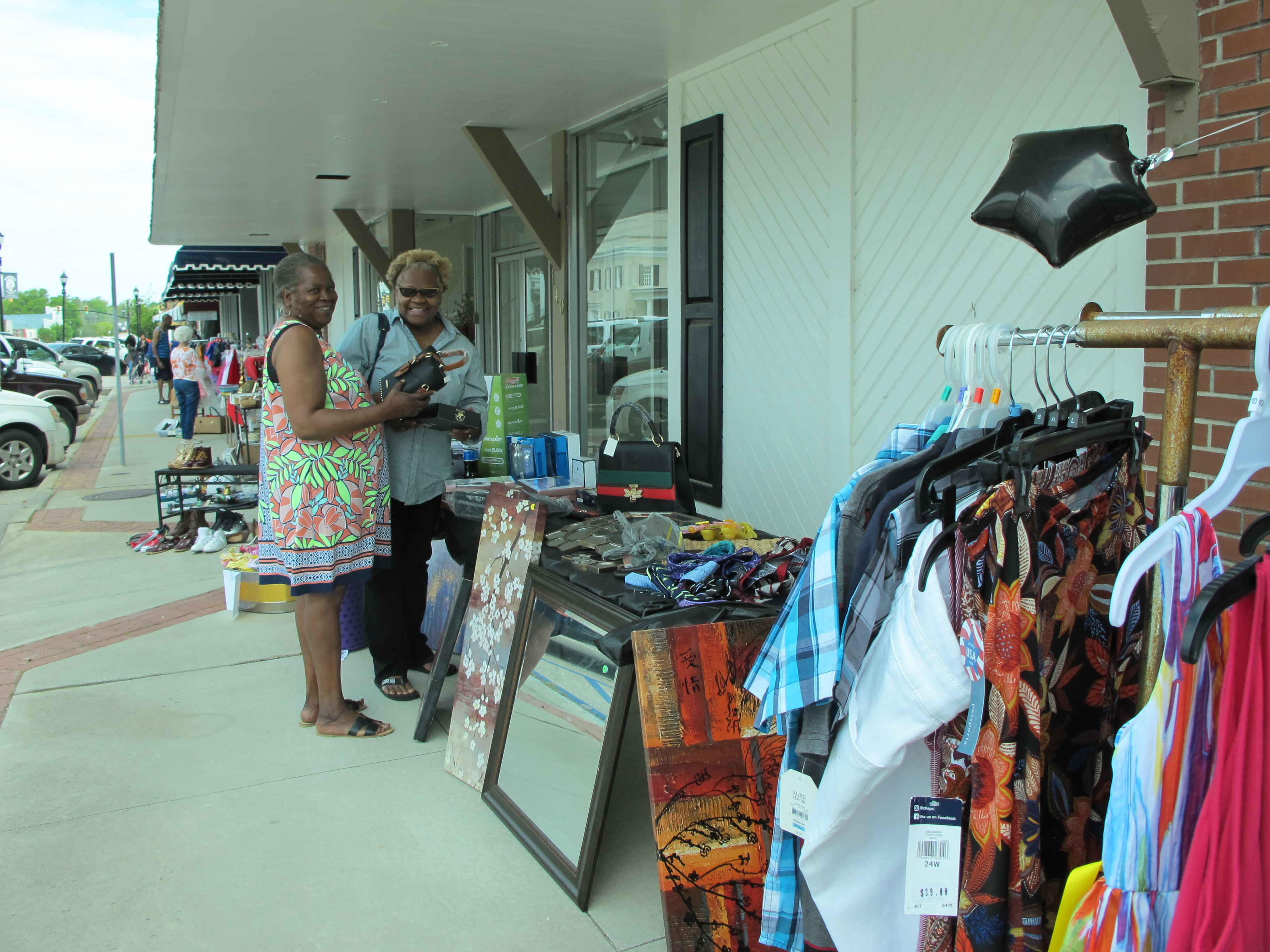 WINNSBORO – It was a bright, sunny day for a sidewalk sale in downtown Winnsboro on Saturday. The annual Winnsboro Merchants’ Sidewalk sale was a big success with about 20 vendors lining the shady side of Congress Street and a few on the sunny side. Shoppers picked through clothing, jewelry, accessories, memorabilia, furniture, games, lamps, dinnerware, you name it.  The Cornwallis Tea room, the Winnsboro House of BBQ and The Barn Express had brisk business until well after the lunch hour, and most of the merchants were open all day.