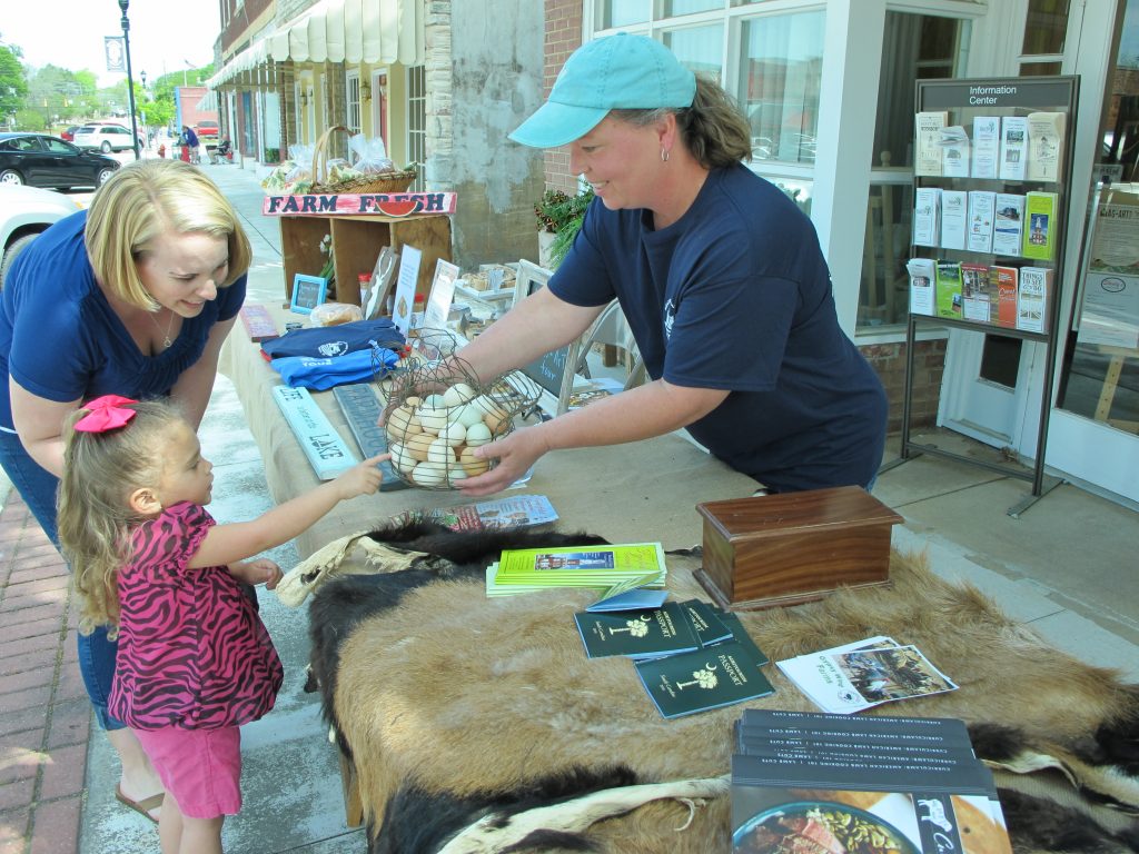 Mason Cordona, 3, selected fresh eggs for her mom, Caitlin, to purchase from Valery Clowney at her farmer’s market booth. | Photos: Barbara Ball