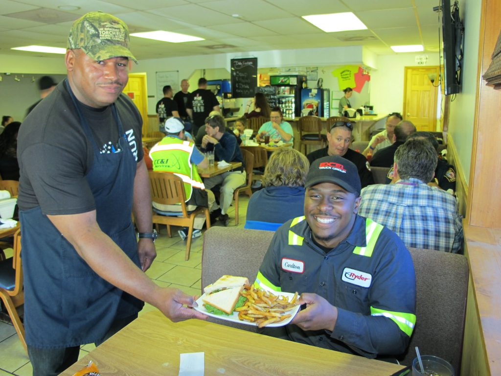 WINNSBORO – Fairfield County Sheriff’s Deputy Captain Dustin Padgett served lunch to Carlton Lyles at Banisters restaurant to help raise funds for Special Olympics. Deputy ‘waiters’ raised $1,131.