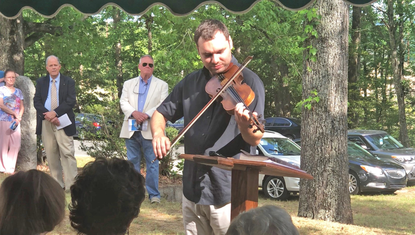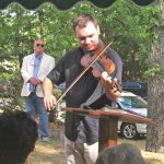 Lifetime Cedar Creek resident and state champion fiddle player, Jim Graddick, let his fiddle fly with “Glory in the Meeting House.”