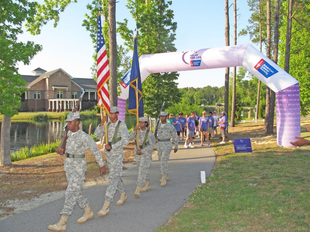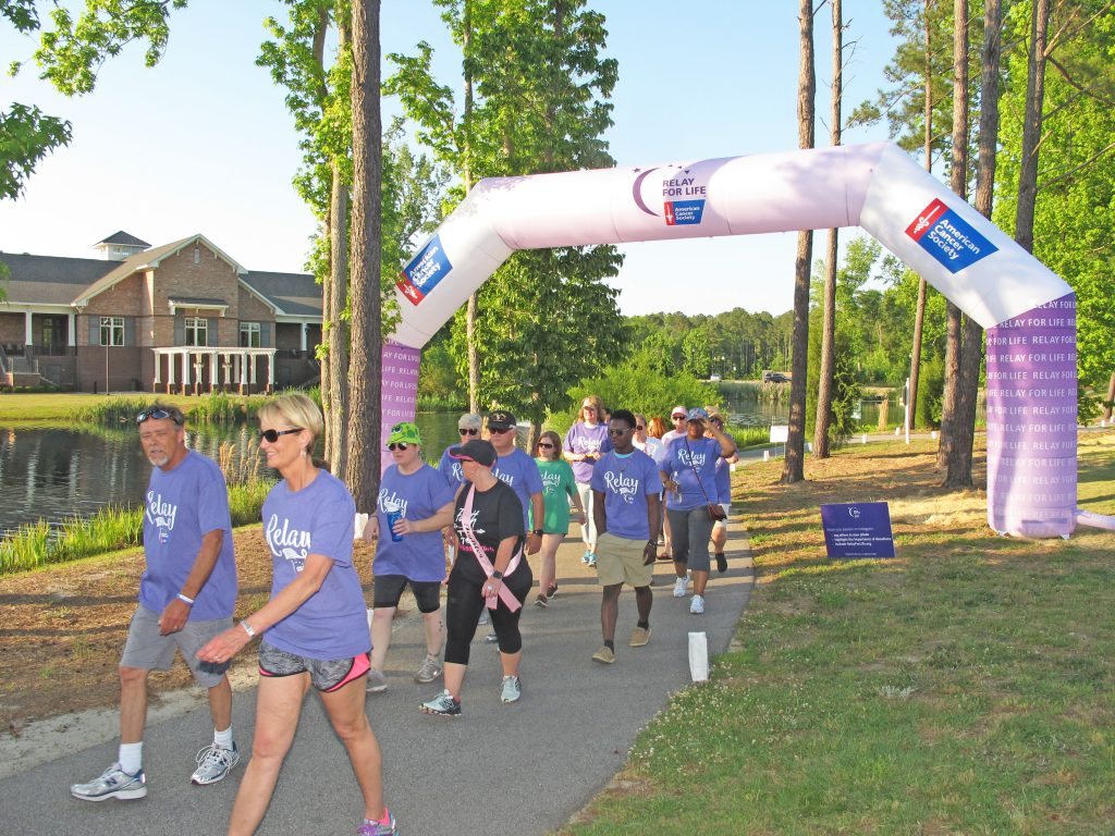 The annual Blythewood Relay for Life event opened with a welcome by Mayor J. Michael Ross, invocation by Mike Sears, New Kirk Presbyterian Church Pastor and the opening event – cancer survivors and caregivers bursting through a giant pink arch onto the park trail for the traditional relay for life.