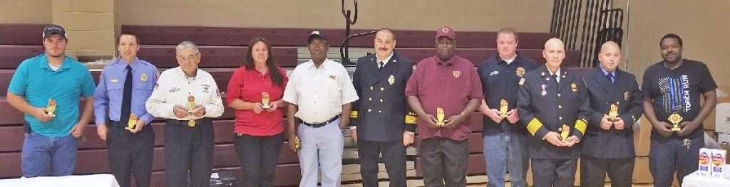 WINNSBORO – Fire stations throughout Fairfield County presented their volunteer firefighter of the year awards during Fairfield County Council’s annual Volunteer Appreciation Dinner on May 4. Awardees pictured with Deputy Director Greg Gerber are, from left, Lewis Loftin, Blackstock; Brandon Edwards, Lebanon; Ned Gwin, Dutchman Creek; Melissa Adams, Ridgeway; Willie Bell, Southeastern; Gerber; Larry Robinson, Blair; Charles Lee, Mitford; Sammie Castles, Greenbrier; Caleb LeGrand, Community; Tavaris Brown, Rescue Squad. Adams was also named Firefighter of the Year for the entire county. James Feaster, Feasterville, and Tommy Sawyer, Jenkinsville, not pictured, were also Volunteer Firefighters of the Year.
