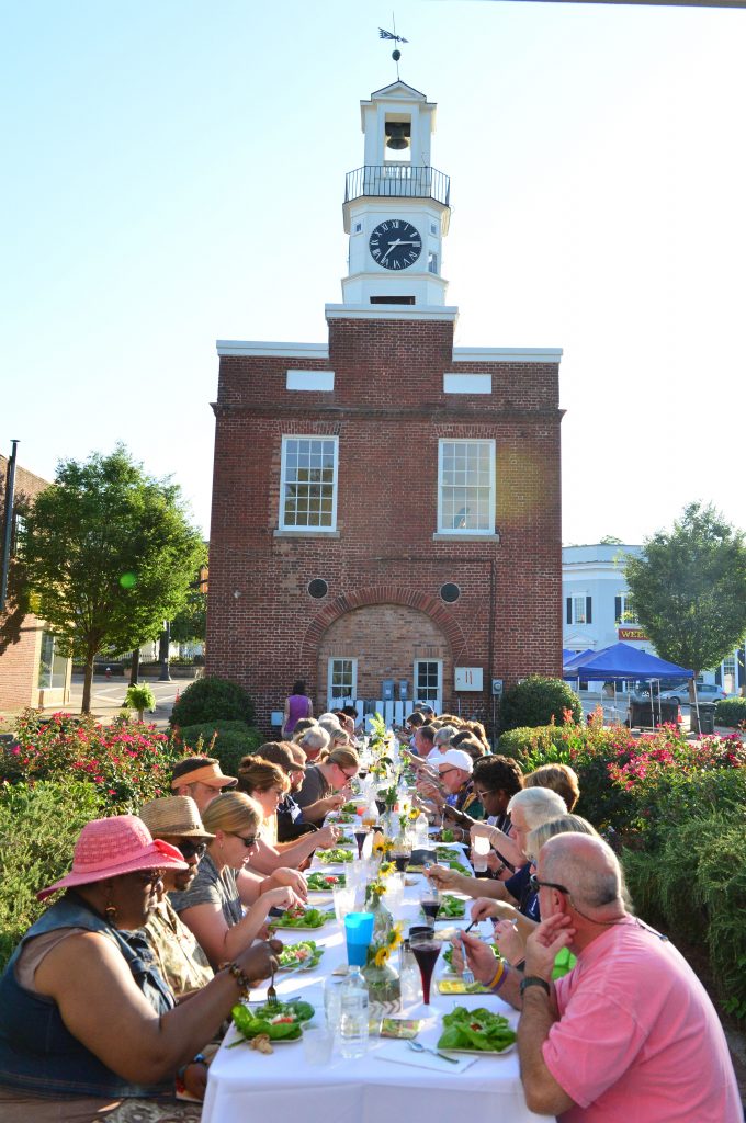 A previous farm-to-table dinner table was set under the Town Clock, above.
