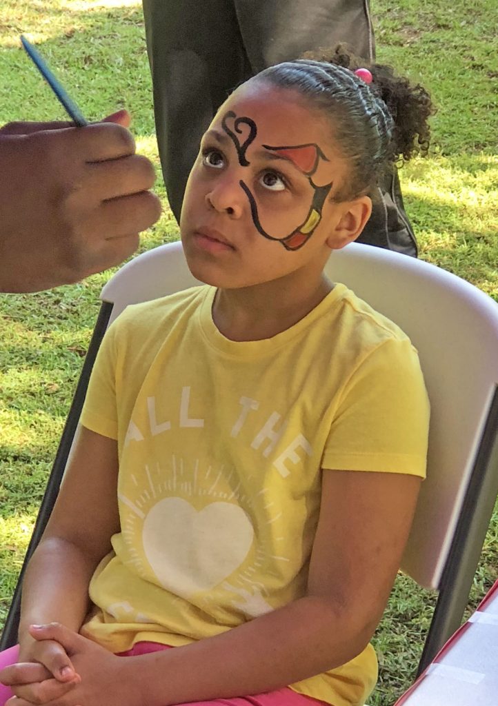 WINNSBORO – Fairfield County Library held its Summer Reading Kickoff on June 2, complete with books, face painting, bouncey houses and games. Pictured above, Frankie O’Neal, Janice Griffin, Fairfield County School Board Trustee Darryl Davis and Fairfield County First Steps Director Patti Wilkes show off some of the best picks for summer reading. Pictured right, Jakiera White has her face transformed into a butterfly.