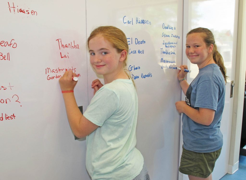 The competition tests the teams’ knowledge of a selection of eight books they are assigned to read. To that end, the teams spent their Saturdays in July at the library prepping with their coaches and answering the kinds of questions they will face in the August competition.