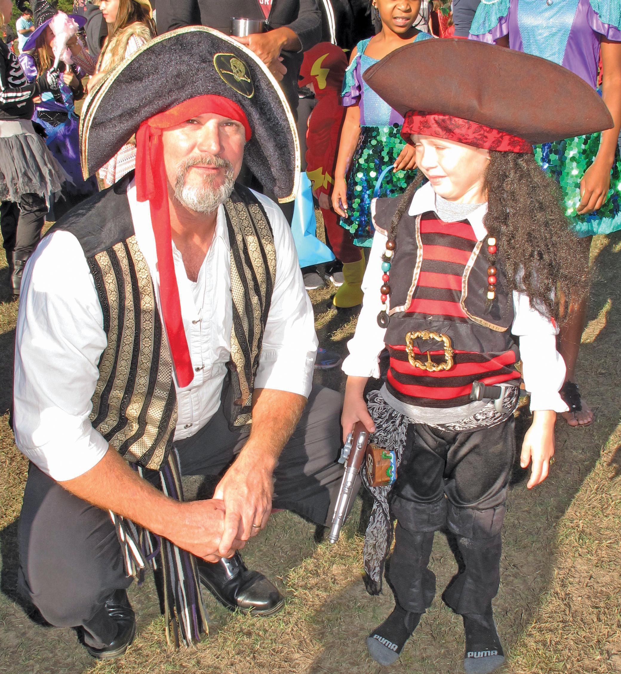 There were hayrides and games, games and more games throughout the field of costumes. Some kids climbed the wall while others walked around a circle of straw bales to music to win dessert prizes. There was a dog dressed like a lion, face painting and balloon art. Fathers and children dressed alike as pirates and Incredibles.